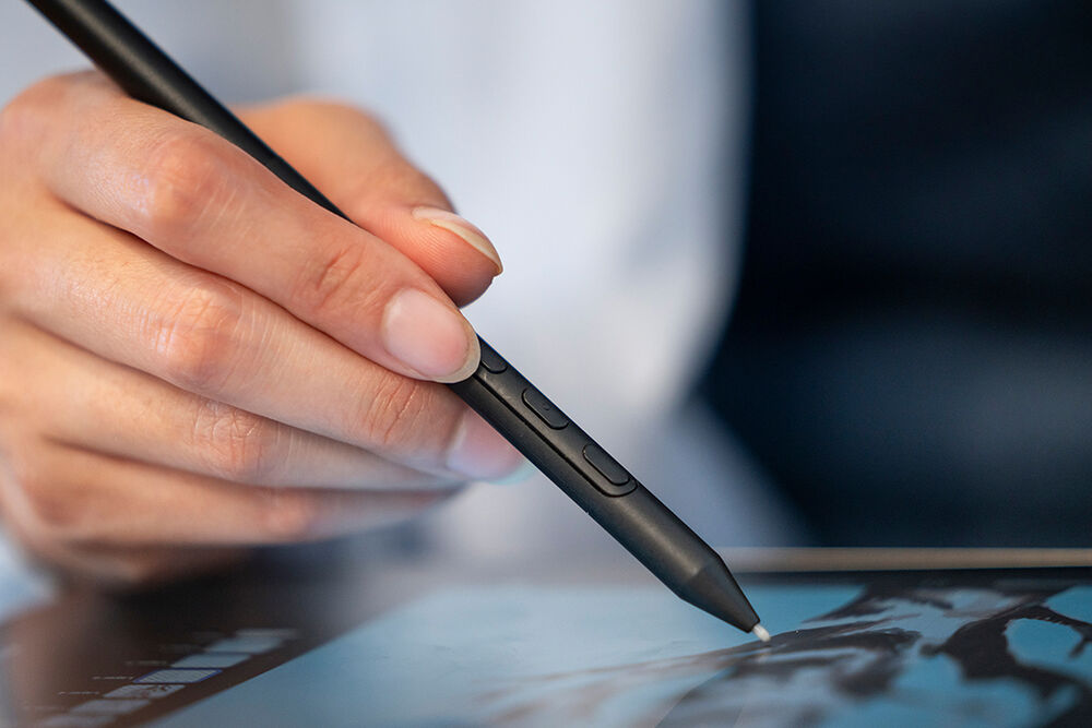 Designed for MovinkPad, the slim version of Wacom Pro Pen 3 has three buttons, delivers 8,192 pressure levels, and comes with replacement nibs stored in the back.