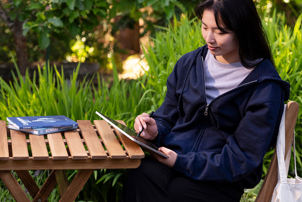 Tap and hold the pen on the screen to instantly launch Wacom Canvas and start sketching the moment inspiration strikes. Seamlessly transition to other apps to refine your drawing.