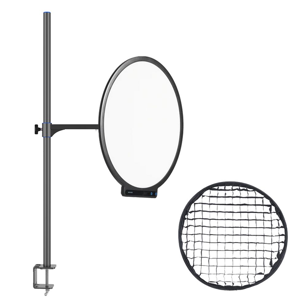 Built for desktop creators in home studios or office applications, the charcoal-finish Verge Max Bi-Colour Round LED Light Panel from amaran has a wide circular surface to provide bright, soft, and even illumination. Thanks to its round form and edge-lit technology, it can be used to create a flattering softbox-like look, while its output makes it useful for creative setups in need of a bright, yet thin fixture. The Verge Max is part of the brand's first LED series designed for desktop creators and is ideal for those who desire warm-to-cool white colour without giving up comfort for the eyes during long recording sessions. The Max version is optimized with front-facing controls and app compatibility, plus a convenient desk clamp stand for overhead or low-angle lighting. It suits live-streaming setups, video recording, product work, and other kinds of content creation. The included desk stand clamps directly onto your desk, while providing easy light positioning. The ultrathin body of the Verge Max with a charcoal finish will complement your workspace decor and ensure complete silence and flicker-free operation. Whether placed at your desk, near walls, or in a corner, its space-saving design won't compromise high brightness and quality of light.