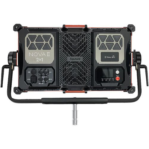 Among the NOVA II 2x1's features is reliable and advanced control. Users can opt for the intuitive onboard or app control, or go with 16-bit DMX512 in/out, LumenRadio CRMX, Art-Net/sACN, as well as USB or DMX batch firmware upgrades. Experience multiple dimming curves, four fan modes, and dual output modes with max and constant settings. Another fact that will impress gaffers and lighting technicians is a direct front-mounting accessory system that reduces the complexity of mounting slide-in modifiers by providing a quicker light shaping solution. Finally, a rugged IP65-rated body was attentively engineered for the most demanding productions. Here, Aputure includes a conveniently removable yoke, a flat diffuser, and a 19.6' long AC power cable.