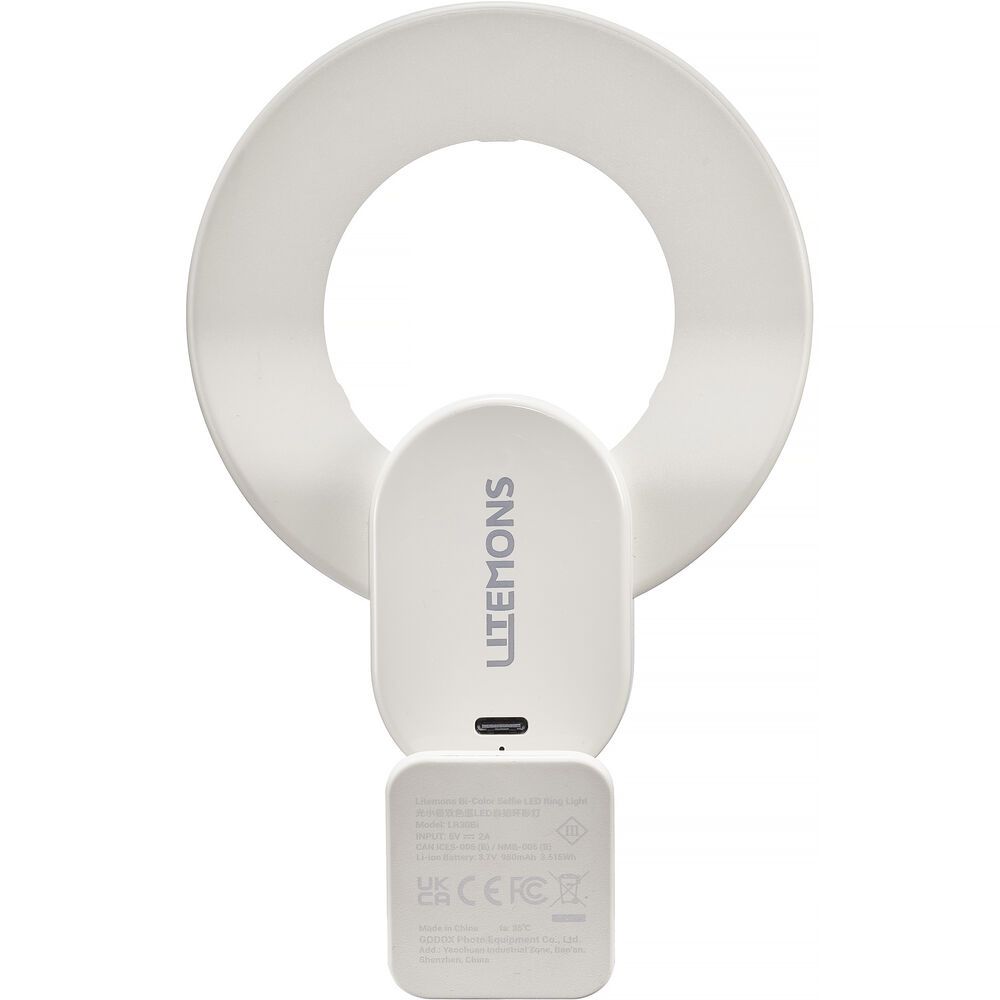 The LR30BI Litemons Bi-Colour Selfie LED Ring Light from Godox is a compact bi-colour LED light that allows creators to add fill light to their still or video content. Select a colour temperature from a candlelight 2800K to a crisp, cool 6500K daylight at one of five selectable brightness levels to suit any shooting application. The LR30BI has a tilting head with a removable make-up mirror for shooting selfies and for vlogging. Clamp it to a smartphone, tablet, or other surface to create an accent light.
