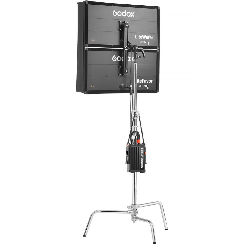 Intentionally packed together for maximized output, the LiteWafer UP150R RGB LED Light Panel 2-Light Kitfrom Godox comes with two UP150R units that can be easily connected to form a 2x2 light source. Each UP150R was made for imaginative creators and sets in need of quality lighting backed by full RGB capability with flexible control, power, and quick mounting and expansion options. Each fixture has a generous CCT range, superior color rendering, and advanced features without giving up brightness and performance. This kit packs two native 13.9 x 26.7" LED panels that can be mounted together using the included straight connector. The kit also includes a controller box that can control both lights, a single softbox that fits both, and a storage bag with other essential accessories. Place these lights in various locations, from studios to mobile productions, ideal for both solo creators and professional teams in need of extra punch.
