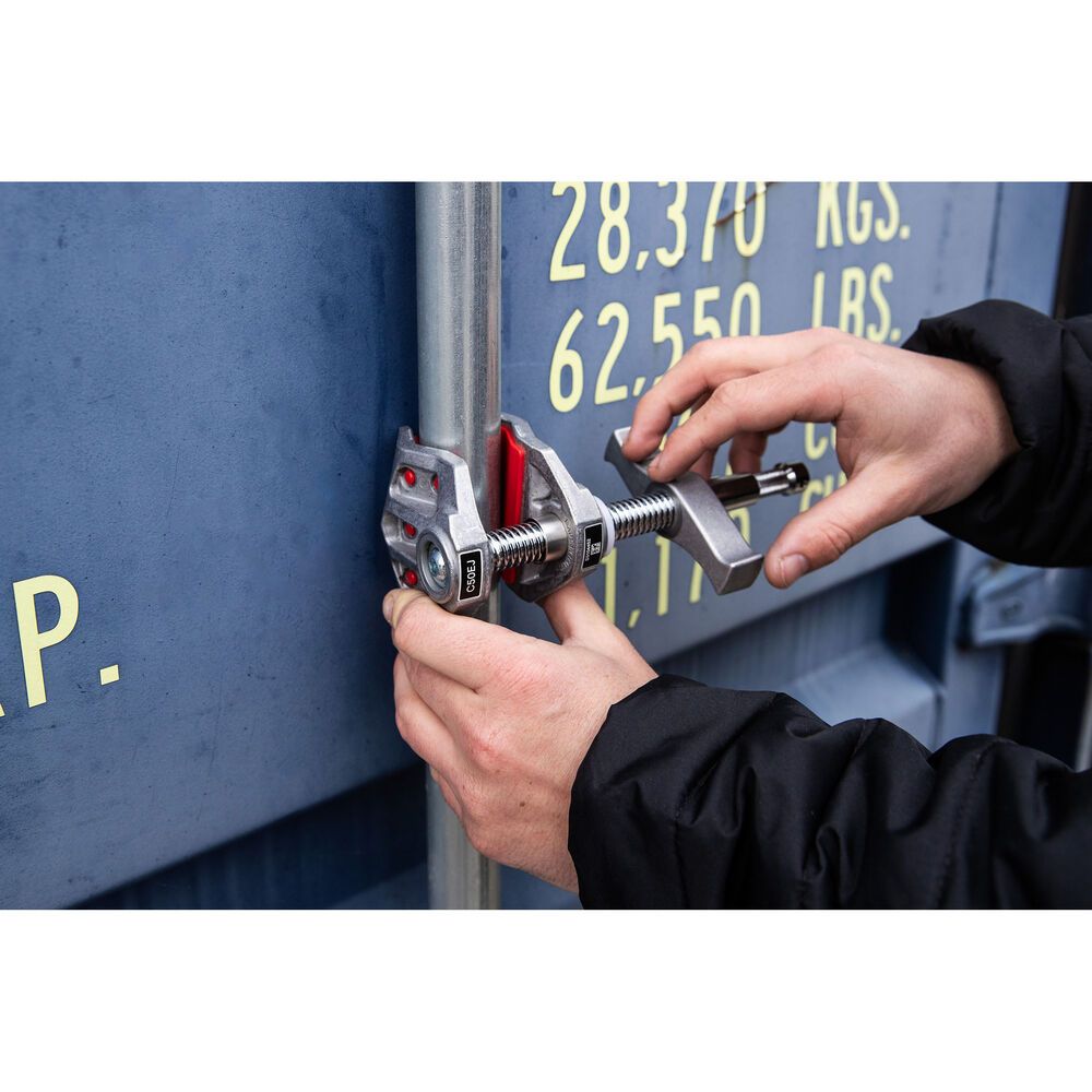 This 2"(5cm) end vice jaw clamp features a fixed jaw at the end of the threaded rod that is ideal for positioning in tight spaces and has a 5/8" baby pin for compatibility with industry-standard fixtures.