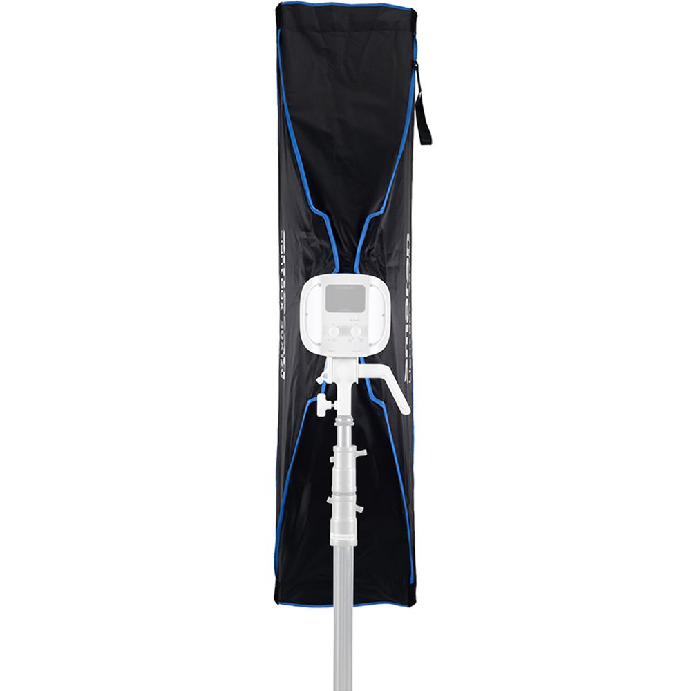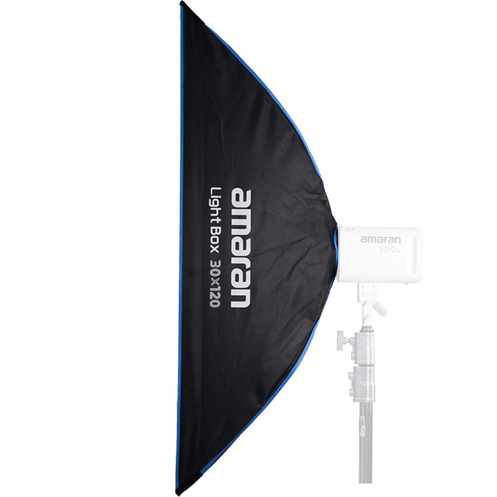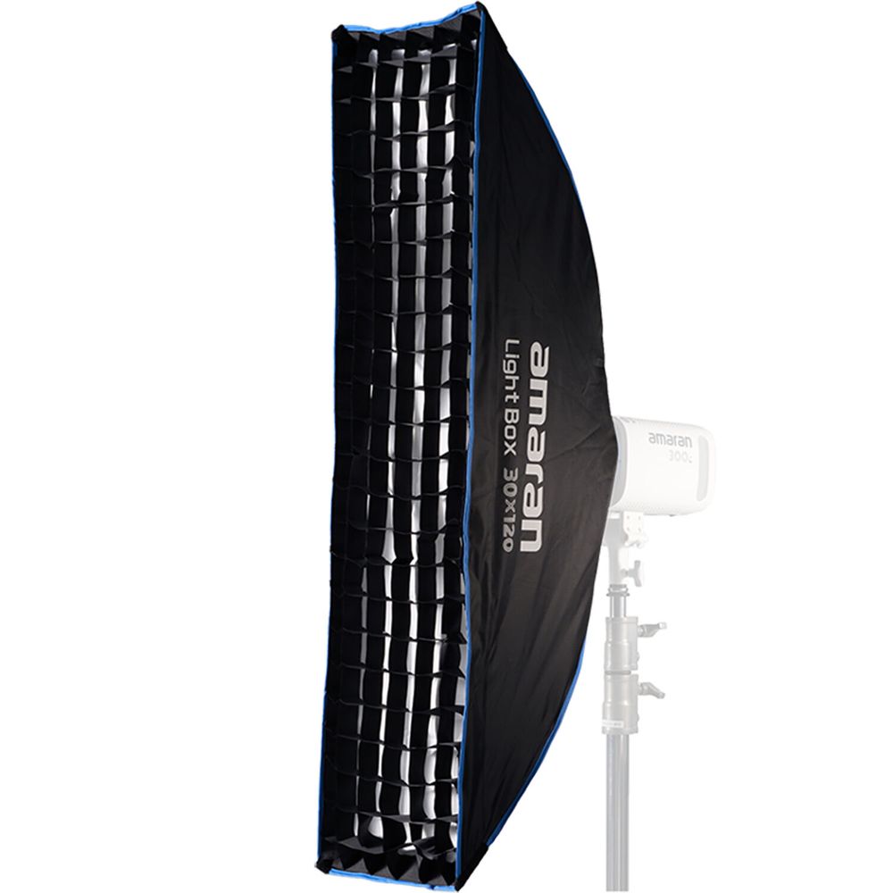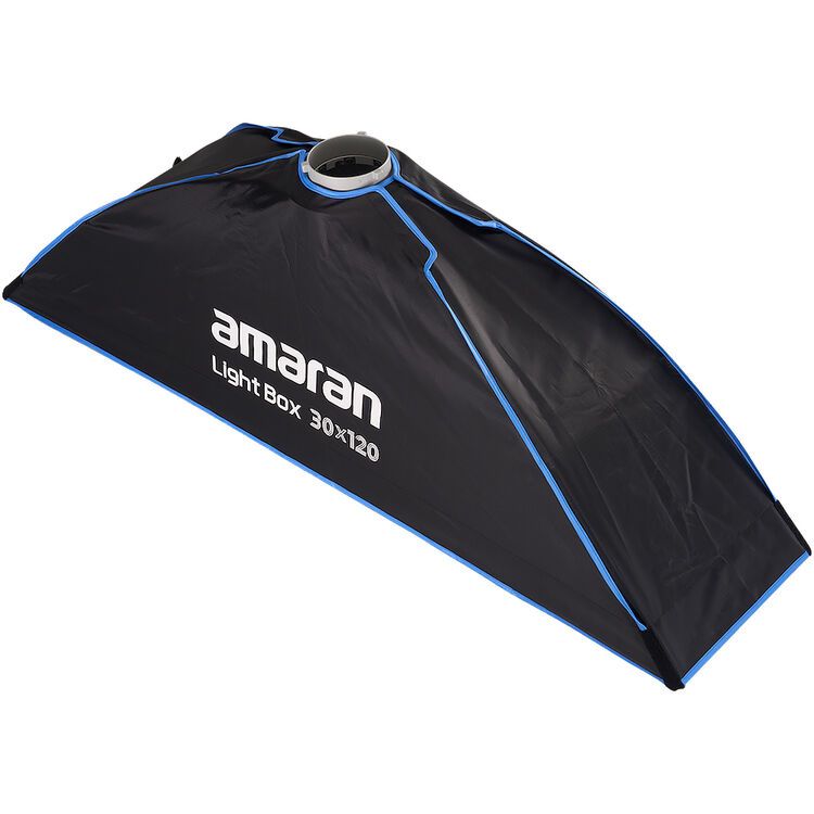 The amaran Light Box 30x120 is a quick and efficient lighting setup, featuring a one-snap mechanism that allows instant assembly, making it ideal for portrait and product photography. With its compact, flat-pack design, it saves space and is easy to store, catering to photographers and content creators who frequently change locations or setups. Compatible with amaran COBs and other Bowens-mount fixtures up to 600W, this softbox provides a large, evenly diffused lighting surface while offering flexibility with an included grid for added contrast and control.