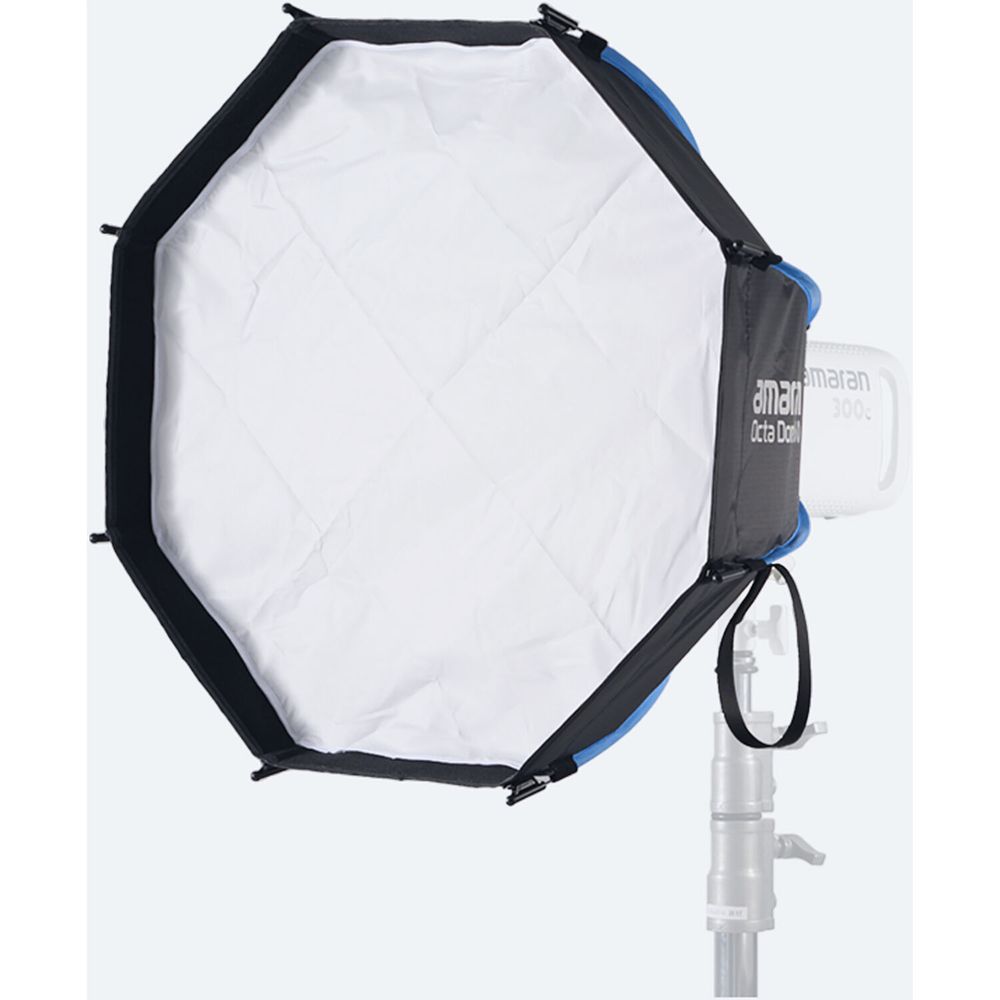 The amaran Octa Dome 60 softbox is a fast, efficient lighting tool designed for photographers and content creators who need a natural-looking light source with minimal setup time. Its large octagonal shape closely mimics natural sunlight, producing a smooth, evenly diffused glow that enhances skin tones and textures while creating soft, rounded catchlights in the eyes. Built with a one-snap setup mechanism, it expands instantly with a simple pull of the speed ring handle, eliminating the hassle of complex assembly and breakdown. The slim, collapsible design makes it easy to store and transport, making it ideal for both studio and on-location shoots where space and time are limited.