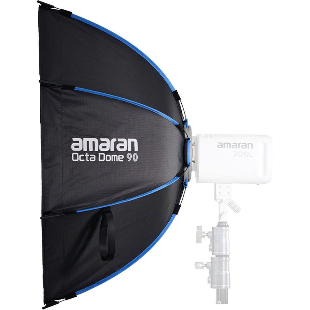 The amaran Octa Dome 90 softbox is a fast, efficient lighting tool designed for photographers and content creators who need a natural-looking light source with minimal setup time. Its large octagonal shape closely mimics natural sunlight, producing a smooth, evenly diffused glow that enhances skin tones and textures while creating soft, rounded catchlights in the eyes. Built with a one-snap setup mechanism, it expands instantly with a simple pull of the speed ring handle, eliminating the hassle of complex assembly and breakdown. The slim, collapsible design makes it easy to store and transport, making it ideal for both studio and on-location shoots where space and time are limited.