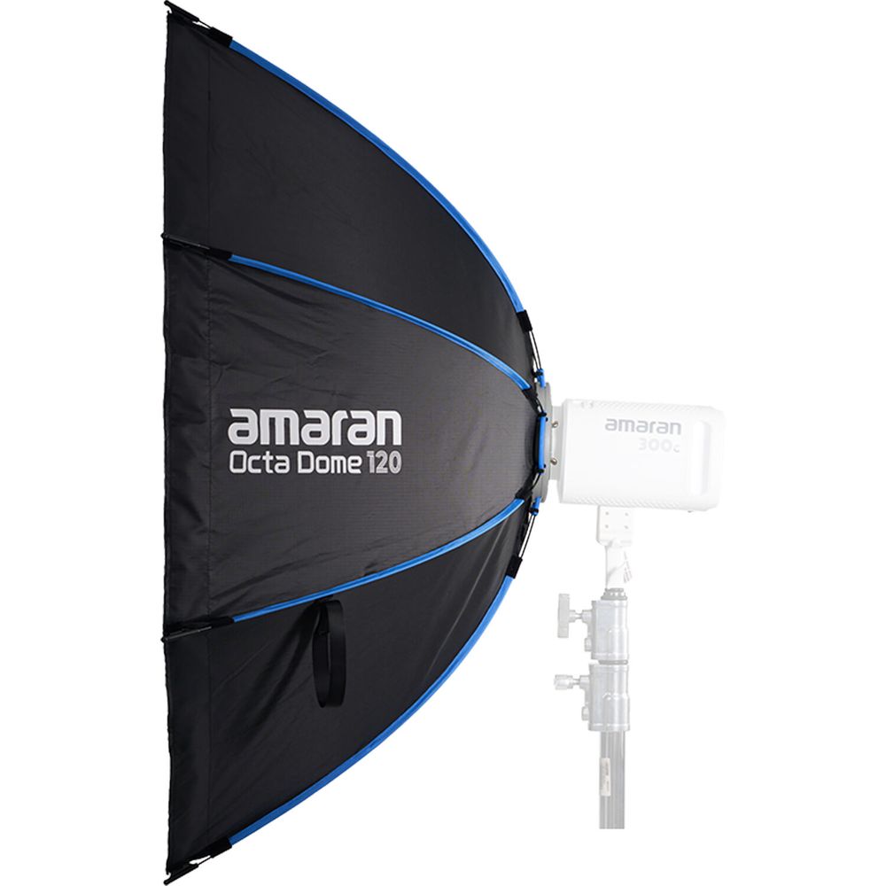 The amaran Octa Dome 120 softbox is a fast, efficient lighting tool designed for photographers and content creators who need a natural-looking light source with minimal setup time. Its large octagonal shape closely mimics natural sunlight, producing a smooth, evenly diffused glow that enhances skin tones and textures while creating soft, rounded catchlights in the eyes. Built with a one-snap setup mechanism, it expands instantly with a simple pull of the speed ring handle, eliminating the hassle of complex assembly and breakdown. The slim, collapsible design makes it easy to store and transport, making it ideal for both studio and on-location shoots where space and time are limited.