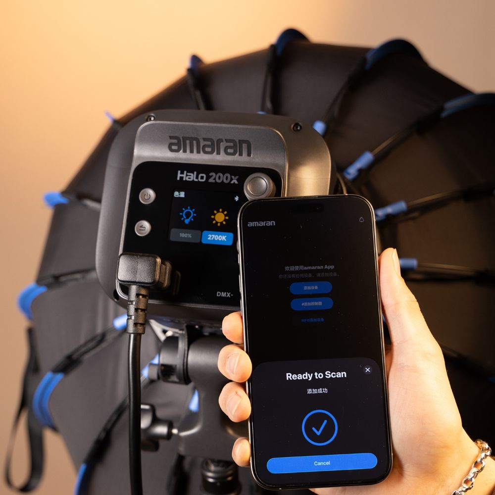 and colour temperature knobs and a clear, simplified interface, the amaran Halo 200x keeps adjustments fast and intuitive with virtually no learning curve. For wireless control, pair your amaran Halo 200x or multiple lights in the Halo family in the amaran app with just a tap via built-in NFC – even before turning it on.
