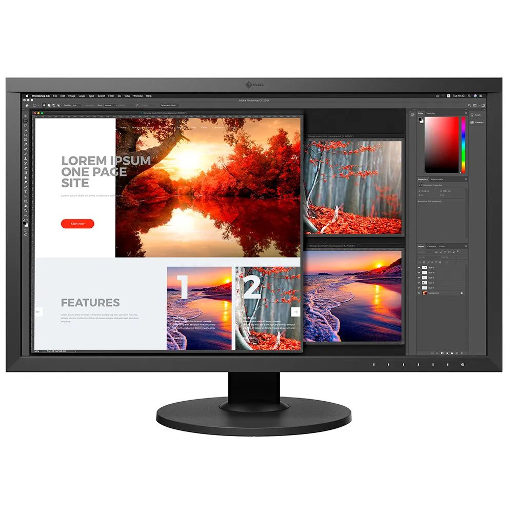 The ColorEdge CS2740 is the first CS series monitor to implement 4K UHD resolution (3840 x 2160), which is four times the size of Full HD. The remarkable detail ensures that high resolution photos and other content are displayed crisply. The 27-inch screen provides ample space for easily displaying Full HD content in full with enough space to show toolbars, palettes, and other windows or applications simultaneously. This makes the monitor versatile for photos, video editing, design, and other types of creative work up to 4K.