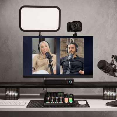 Trade your large-footprint switcher for a more compact, software-based model in your social media, streaming, podcasting, or live event production using the RODECaster Video Core. Like its predecessors, the console blends the best of HD video switching technology with the familiar studio-grade audio control of RODECaster units, all controlled by your personal computer interface. A variety of connectivity options, including HDMI and USB-C ports, accommodate UVC video sources as well as both analog and digital audio sources. Up to 16 possible audio sources, or nine stereo channels, can be routed to the RODECaster Video Core via both wired and wireless connections. Add the RODECaster Video Core to your preexisting RODE audio ecosystem using the USB-C audio ports or RODECaster Sync.