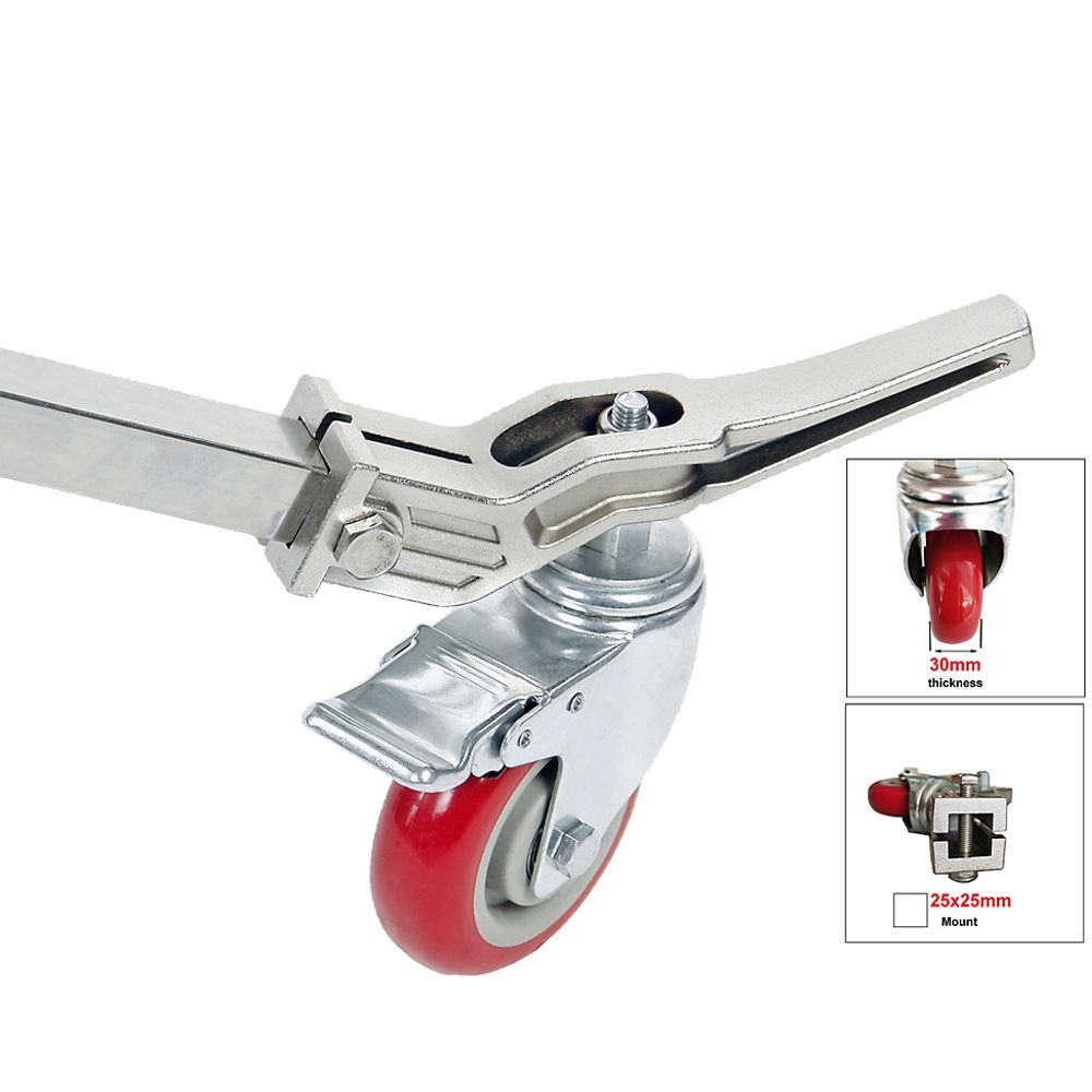 Heavy duty locking Wheel Set for light stands with 25 x 25mm square tube leg.