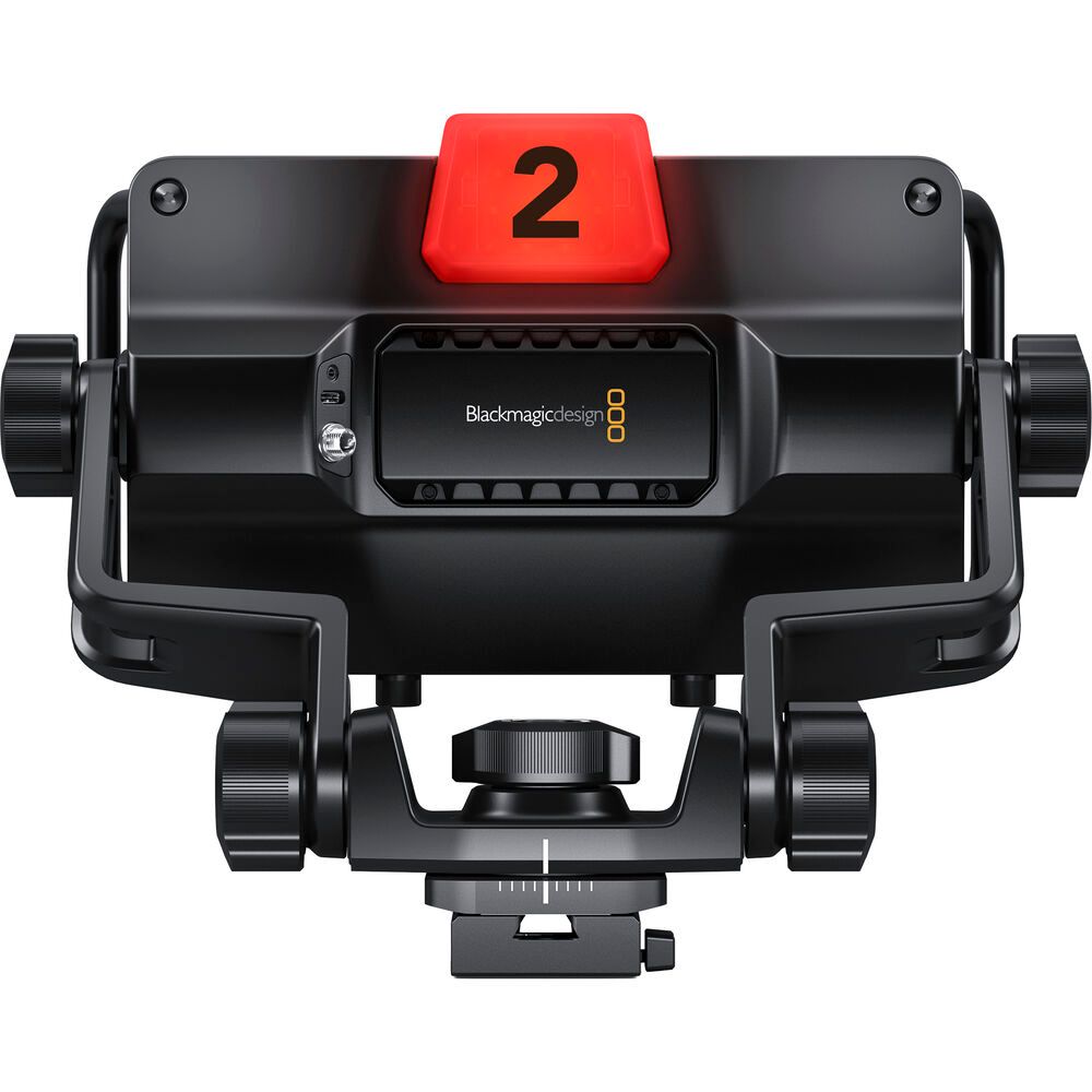 Use the URSA Cine Studio Viewfinder from Blackmagic Design to get high-resolution monitoring for your live URSA Cine event capture. This 7" viewfinder/monitor features a high-resolution 1920 x 1200 TFT LCD touchscreen, built-in grab handles, and a detachable sun hood to prevent glare. It features screen overlays, multiple controls, and a single USB-C video/power/control cable. Mount the viewfinder on your URSA Cine 12K camera using its bottom V-lock mount.
