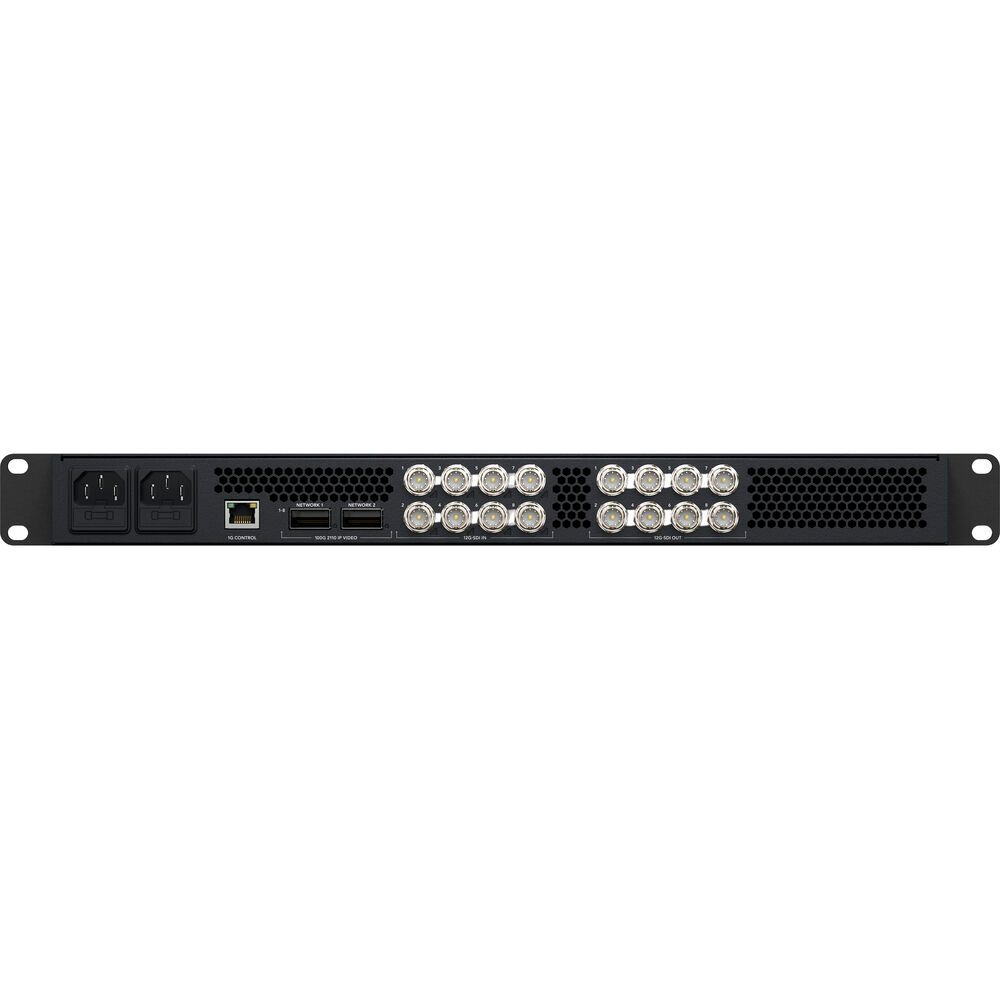 - Eight 12G-SDI inputs and eight 12G-SDI outputs in a single 1 RU chassis
