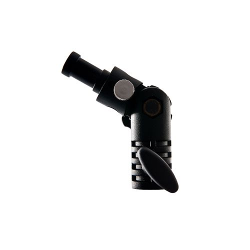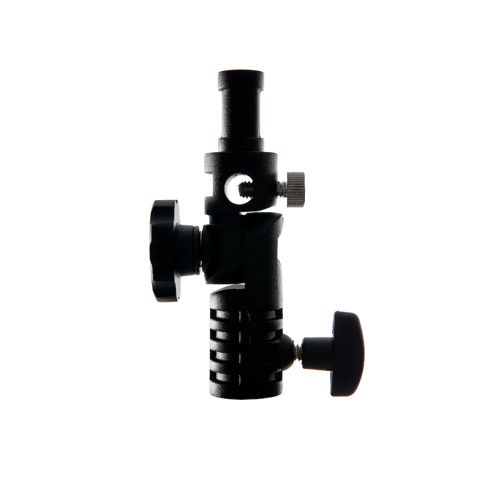 The Lastolite Ezybox Hotshoe Tilt Bracket with spigot features a standard spigot mount and will fit onto any support device with a traditional spigot like most lighting stands.