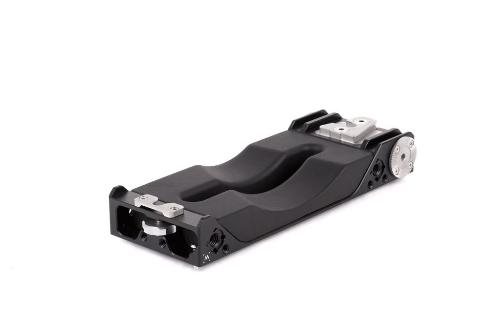 Threaded M6 ARRI standard rosettes are found on each side and can be combined with our Rosette Standoffs and Rosette Arms for a quick, handheld configuration. Also present are 1/4-20 threaded holes and the ARRI standard accessory mounts (3/8-16 threaded hole with locating pins adjacent).