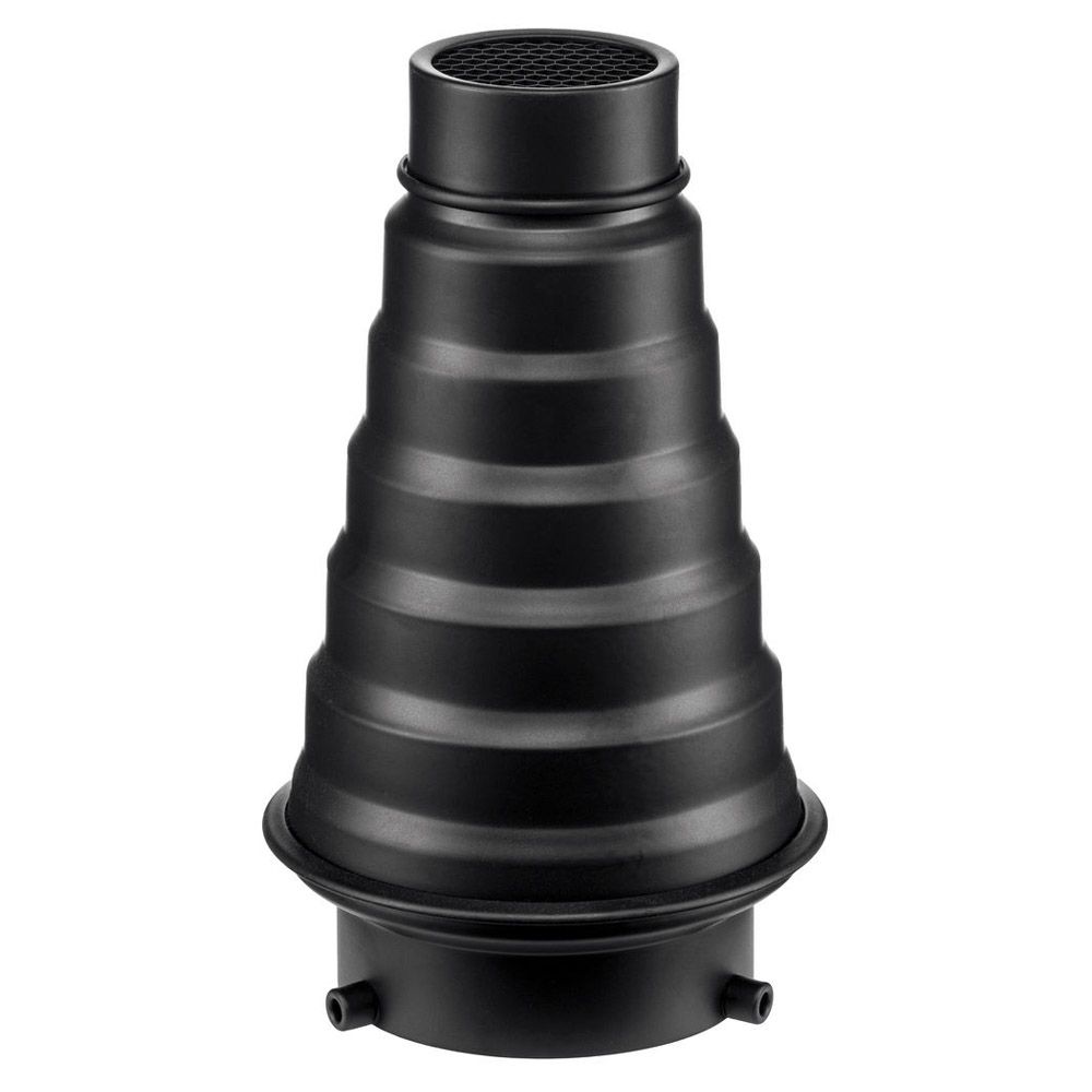 Add some more precise control over where light falls on your subject and scene by using a Snoot with Honeycomb Grid from Godox on your light. This version is available with a Bowens S-type mount and the snoot will narrow the beam into a soft-edged circle. Additionally, the included grid will further limit the beam's spread.