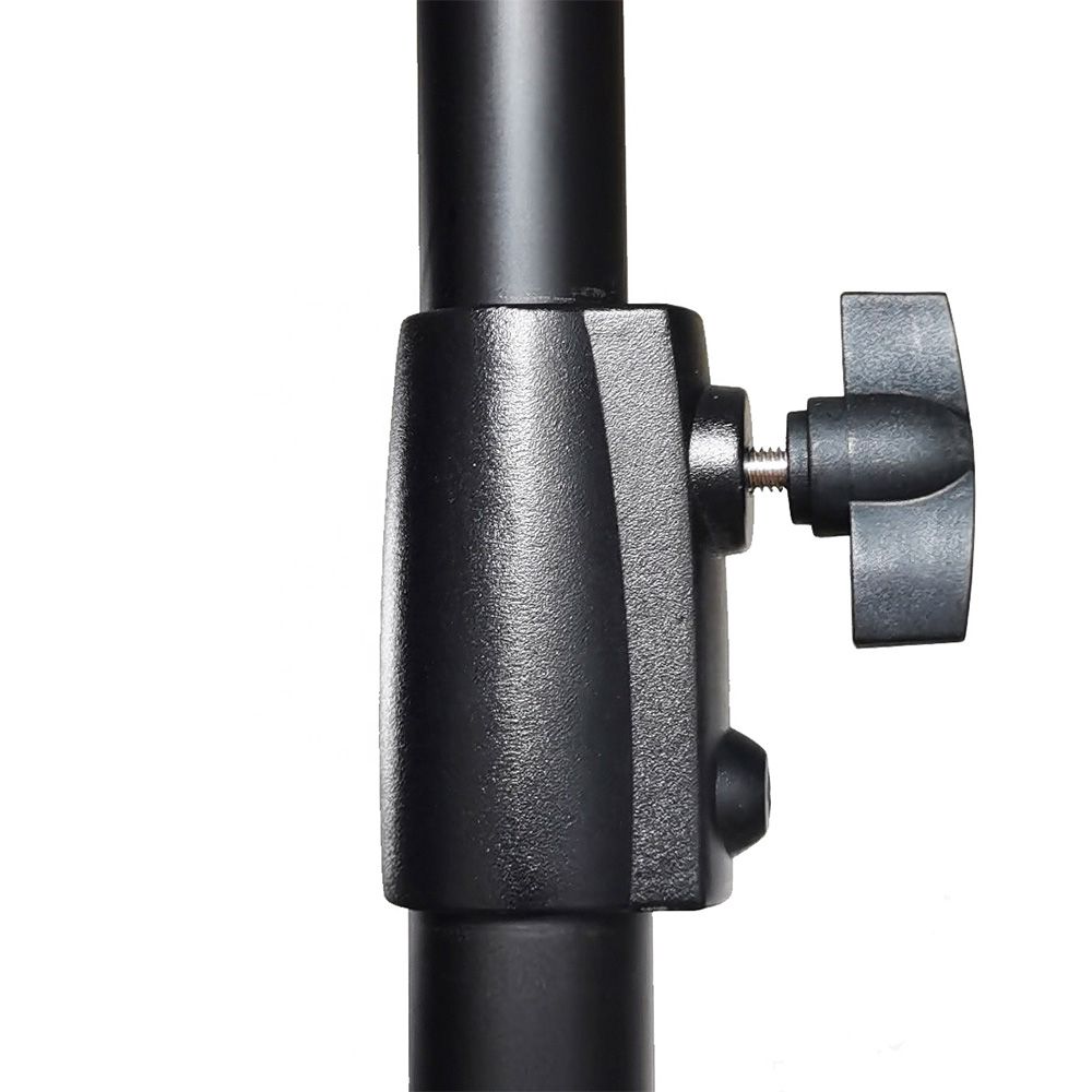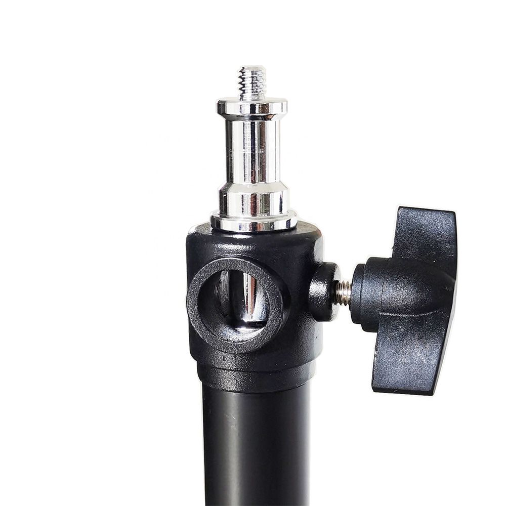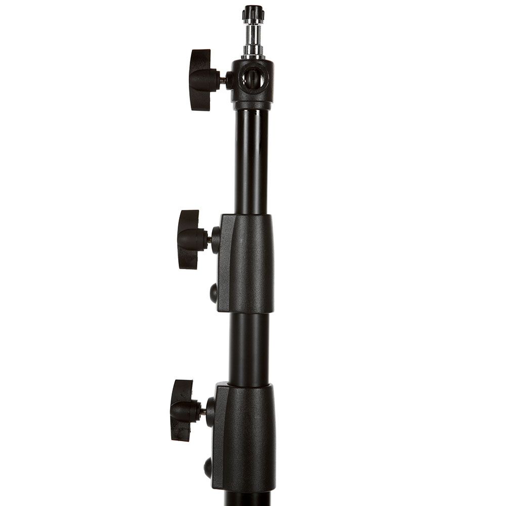 This professional quality light stand offers maximum support with minimum bulk. It is made of attractive black aluminum, making it lightweight and easy to take on location. It has a reversible spigot