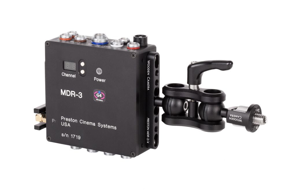 The Preston MDR3 / MDR4 Ultra Arm Mounting Kit (3/8-16 ARRI Accessory Mount) is an articulating arm with a set of 25mm (1 inch) ball joints which allow the Preston MDR3 or MDR4 to be positioned in just about any orientation. One end is the mounting bracket for Preston and the other is a tool-less 3/8-16 knob with non-slip rubber pads. Also included are two locating pins that can be installed on the 3/8-16 end turning it into an ARRI accessory mount compatible device.