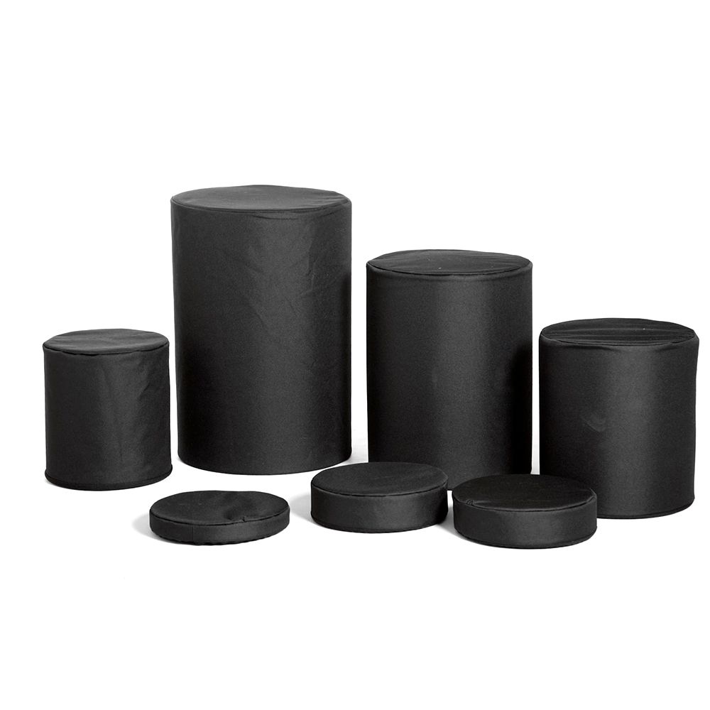 The Posing Tubs set includes four tubs and three cushions in a variety of sizes. This enables the subjects to be posed at different heights and angles for optimum composition of group portraits. The tubs are covered with a strong, durable nylon fabric and are padded for comfort. They have been designed to be nested in a 'Russion Doll' style for ease of storage and portability. The tubs measure 30cm, 38cm, 50cm and 63cm high.