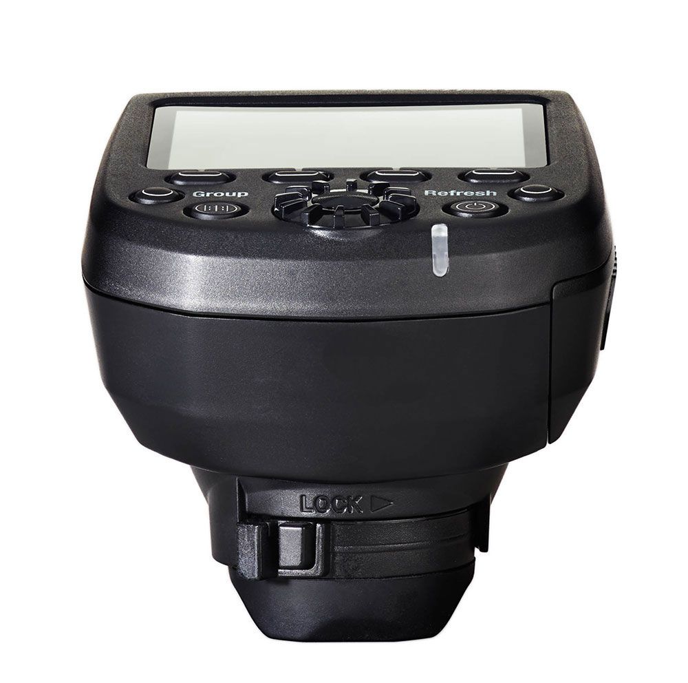 The transmitter attaches easily and securely to the hotshoe with its bayonet locking system and is powered by 2x AA batteries. It also features an integrated AF illuminator for fast focusing and a mini-USB socket for firmware updates.