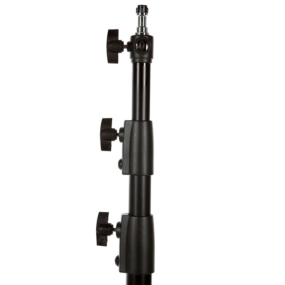 This professional quality light stand set offers maximum support with minimum bulk. It is made of attractive black aluminum, making it lightweight and easy to take on location. It has a reversible spigot and comes in a black carry bag for convenience.