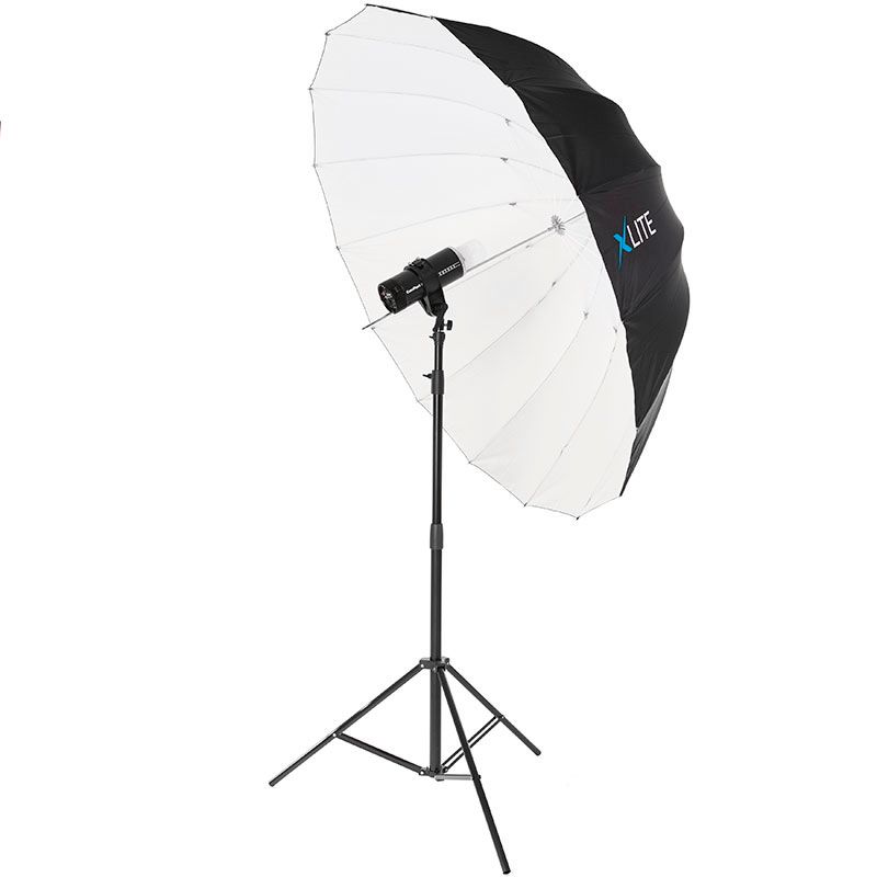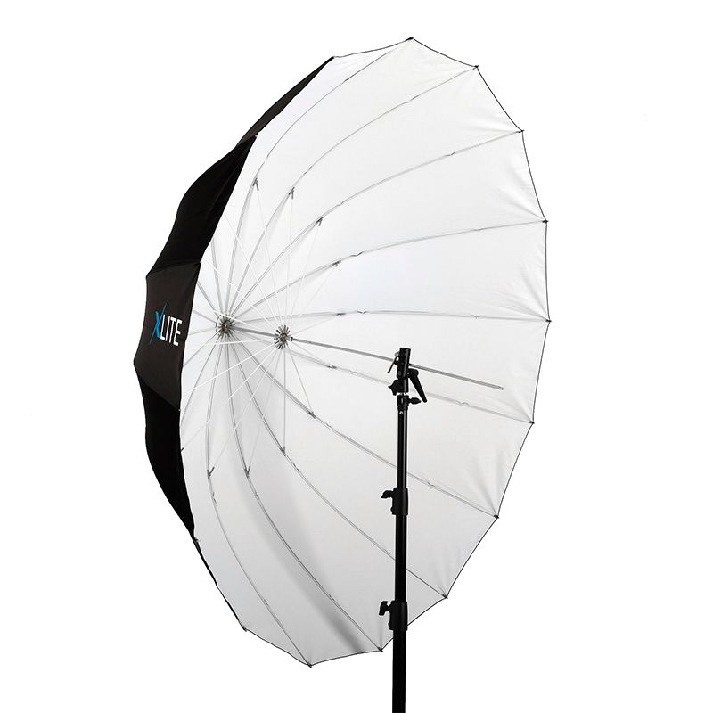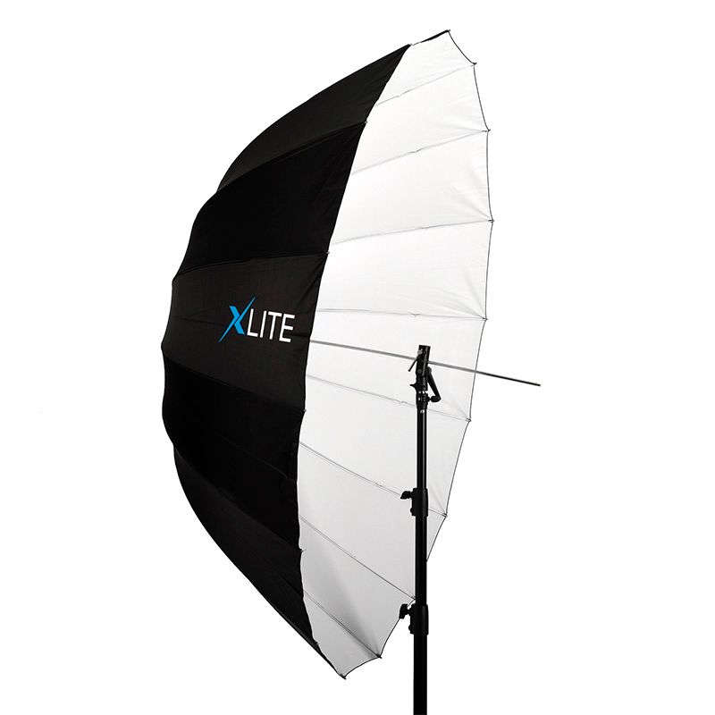 Extra large parabolic umbrellas are popular among portrait, people and fashion photographers. They create a smooth but yet distinctive light that allows the user to illuminate an entire person or even small groups with just a single light source. The deeper shape gives the photographer better control of the light spread. It also allows the photographer to focus and shape light by simply sliding the umbrella shaft in its holder. In addition, the strong glass fiber rods make the Xlite Deep Parabolic Umbrella series remarkably reliable and sturdy. It is available in three versions: Silver, White and Translucent. The white versions create an even, diffused light with soft shadows, and the closer the umbrella is placed to the subject, the softer the shadows will be.