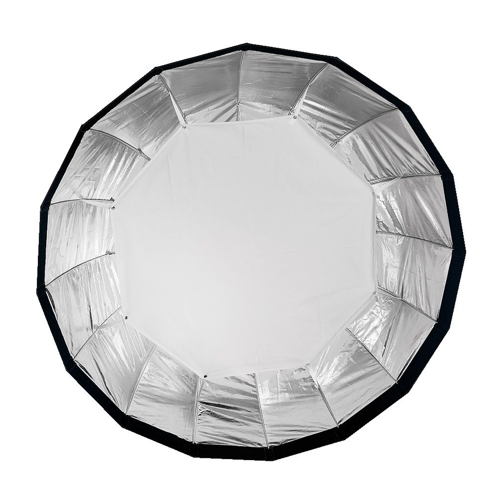 Perfect for on-location shooting. It folds down like a regular umbrella but expands straight into a octa softbox for instant use, saving time over traditional softboxes which require rods and speed rings for assembly. The recessed front diffuser allows for more precise positioning and feathering of light. Included is a removable grid and mask to better control light spill in situations when accuracy is essential.