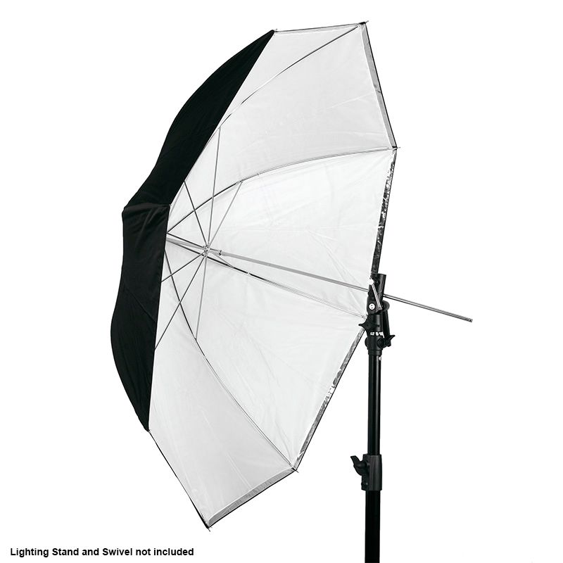 This handy 2 in 1 umbrella is ideal for the photographer on the move. With the benefits of both a translucent shoot through and a reflective white in the one umbrella. Further lighting control can be acheived by partially removing the reflective cover in shoot through mode to flag the light.