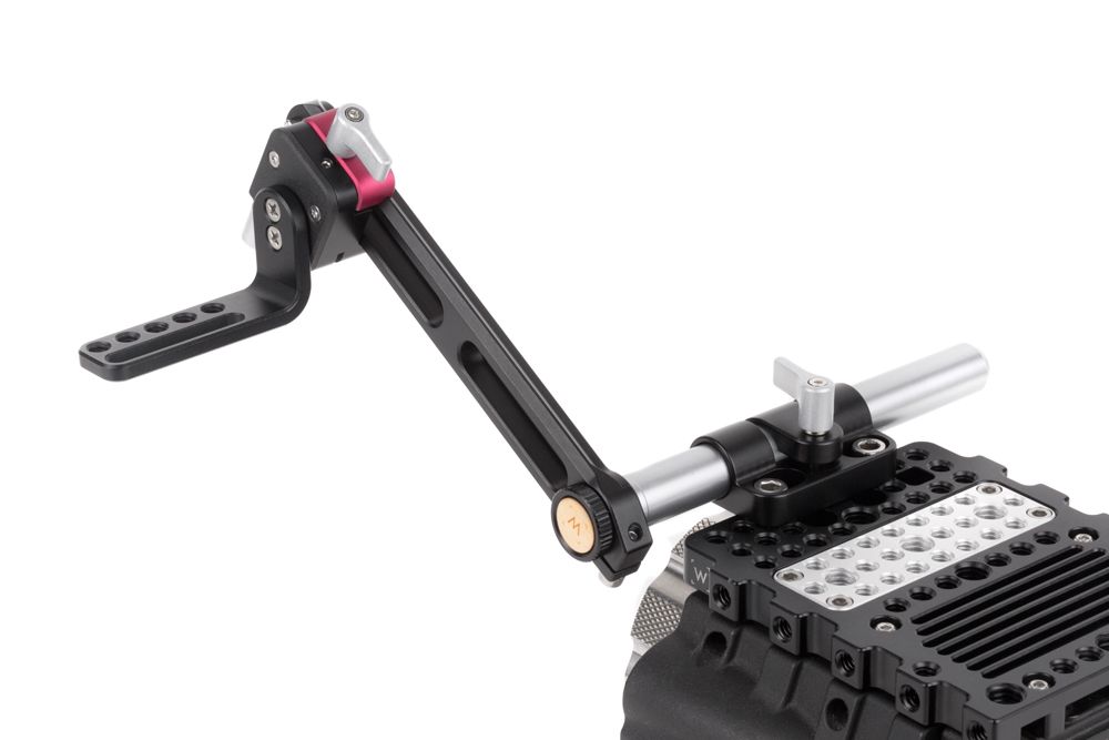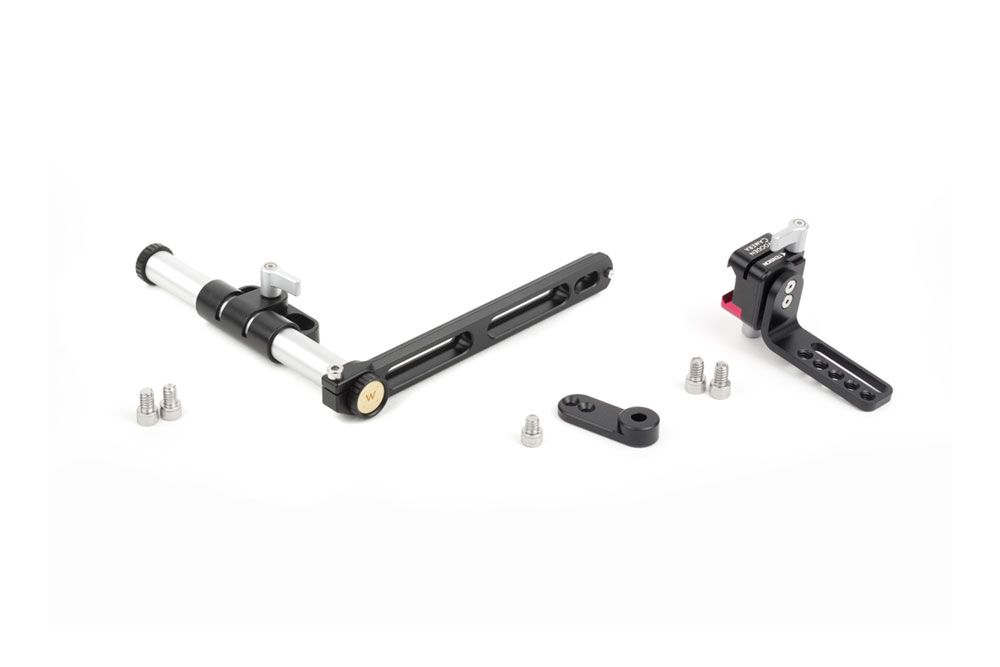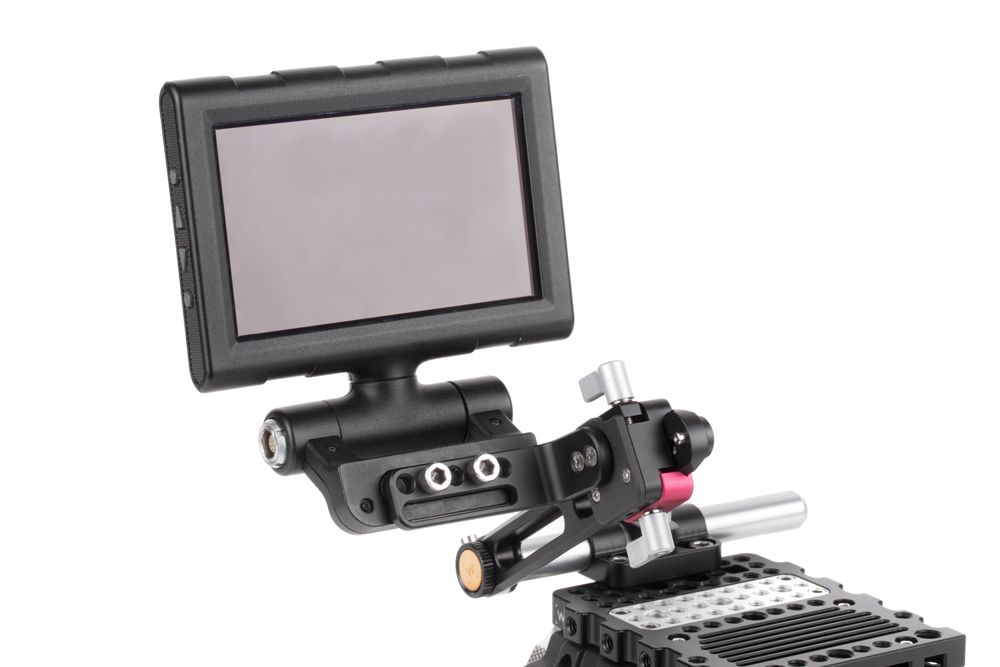 The included 15mm Tube Clamp bolts directly to two 1/4-20 screw holes spaced between 25mm and 36mm centre to centre. Can attach directly to RED Dragon/Epic/Scarlet and AJA CION. Can also attach to other cameras via Wooden Camera cages and cheeseplates.