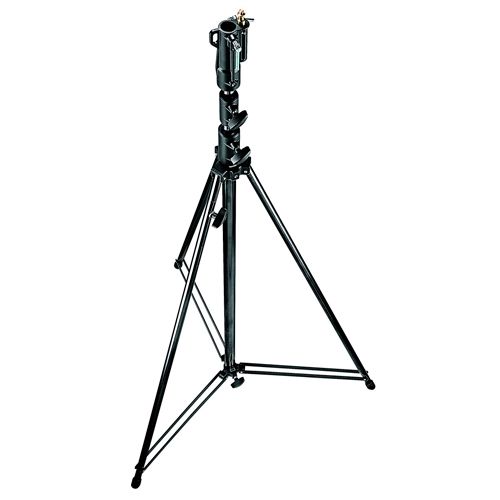 At its full height of 3.6 m, it will tolerate a load of up to 6 kg. At its minimum height, it will hold up to 25 kg. Its chrome-plated finish is black, to minimize reflections. This stand accepts wheels 103, 104, 104G