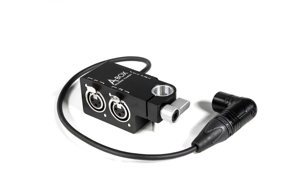 A-Box (ARRI Alexa) adapts one 5 pin XLR to two balanced, 3 pin XLRs (female). Highest quality professional grade connectors.