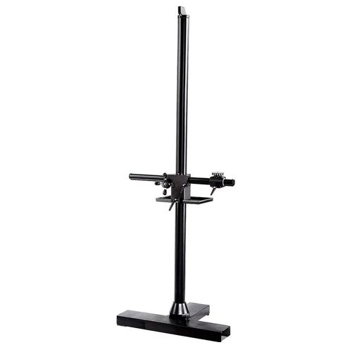 Our Top-of the-Line stand, the Super Salon 230 brings the ultimate in stability to new heights in your studio. The rugged column in mounted on a heavy-duty cast “T” base easy to move around because of its smooth-rolling wheels. They can be locked into position with just one step on the single control pedal. The Super Salon 230 has a 10cm diameter black anodised aluminium column and a 100cm horizontal camera arm that travels 62cm. Arm has precise rack and pinion drive, and is accurately counter-balanced to move smoothly up and down. The camera support platform allows movement in a solid angle of 360°. Supplied with counter-balanced crossarm, camera support platform and accessory tray.
