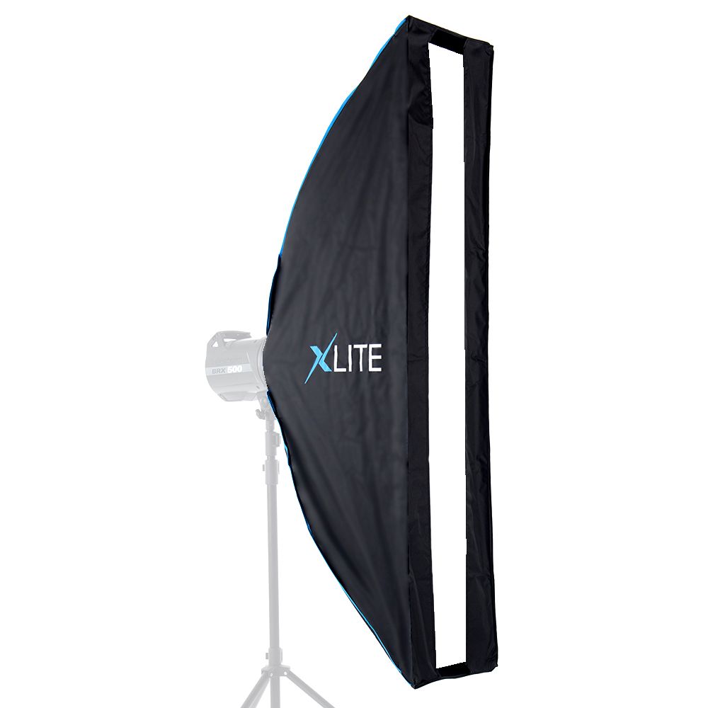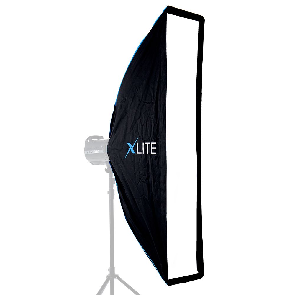 Xlite Pro Umbrella Strip softboxes create a long, thin column of light that is typically used to create separation between the subject and the background. The long length and narrow width of a strip softbox create a very precise shaft of light that cannot be replicated by any other softbox. Portrait, fashion and beauty photographers use strip softboxes as a hair light or rim light, as the narrow column of light from the strip casts an even light across their subject, separating them from the background, but does not send light across the rest of the frame the same as a square or rectangular softbox would. Still-life and architecture photographers use strip softboxes in order to create long seamless highlights across their subjects.