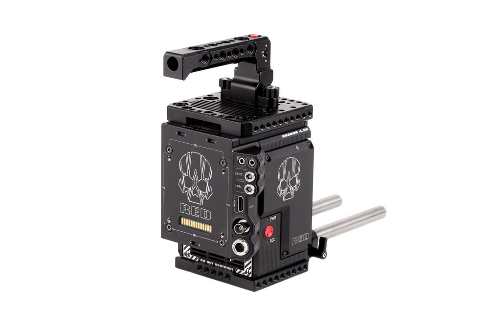 The RED DSMC2 Accessory Kit (Base) includes the Easy Riser, a baseplate that has 1/4-20 and 3/8-16 mounting points on the bottom, provides 1/4-20 holes on the side for attaching accessories and also brings the camera up to correct lens height when using a Bridgeplate built to RED standards. The LW 15mm Bracket attaches to the Easy Riser to hold two 15mm Rods (6") at the correct lens height. On top of the camera, the Pass Through Top Plate (RED DSMC2) provides 26pin LCD Connection and 3pin trigger handle interface. The Trigger Handle (RED DSMC2) is a tool-less handle that can trigger the camera through the 3pin pogo interface on top of the camera or Pass Through Top Plate (RED DSMC2).