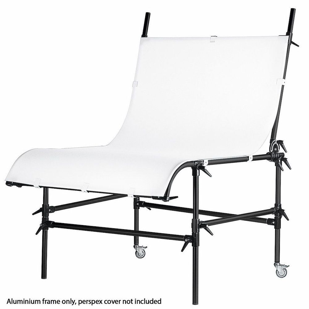 Still Life Table black with a 200cm x 122cm panel. Distance from floor to flat surface: 83cm. Height with back on vertical position: 193cm. Adjustable tilting back.