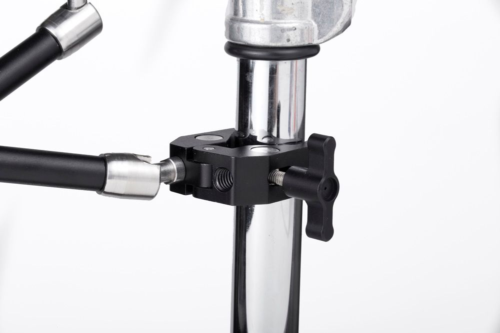 Wooden Camera Super Clamp is a universal clamping jaw with a 1/4-20 and 3/8-16 threaded hole for attaching accessories. Works great with NATO Lock and Magic Arm systems for positioning accessories on gimbal handlebars, Cruiser shoulder rigs, and many other places.