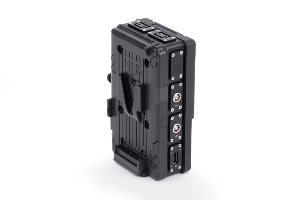 D-Box (2 Pin LEMO Kit, V-Mount) is one of the most popular combinations of connectors including (2) 2 Pin LEMO compatible connectors, (2) D-Tap, (1) USB, and a male V-Mount on one side and female V-Mount on the other. Fits between any V-Mount plate and V-Mount battery.