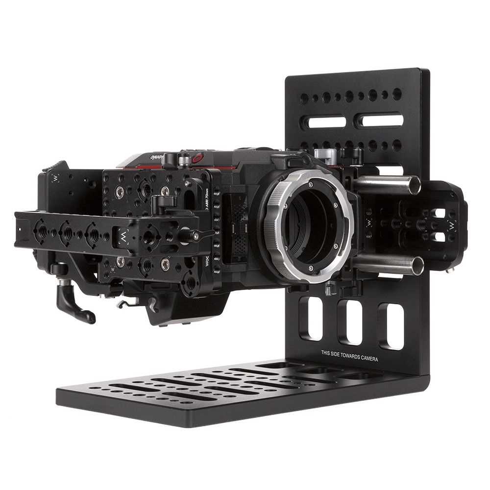 Vertical Camera Bracket has 1/4-20 and 3/8-16 threaded holes plus pass through slots on both the horizontal and vertical plates for attaching to tripod plates, camera bodies, ARRI dovetails, and more. Made of durable, CNC machined aluminium, the bracket can accomodate even the heaviest camera packages.
