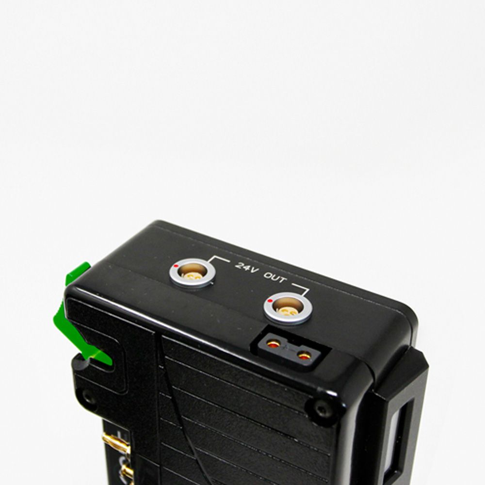 The on-board LCD monitors input percentage/voltage of the power sources, as well as current draw of the entire camera setup.