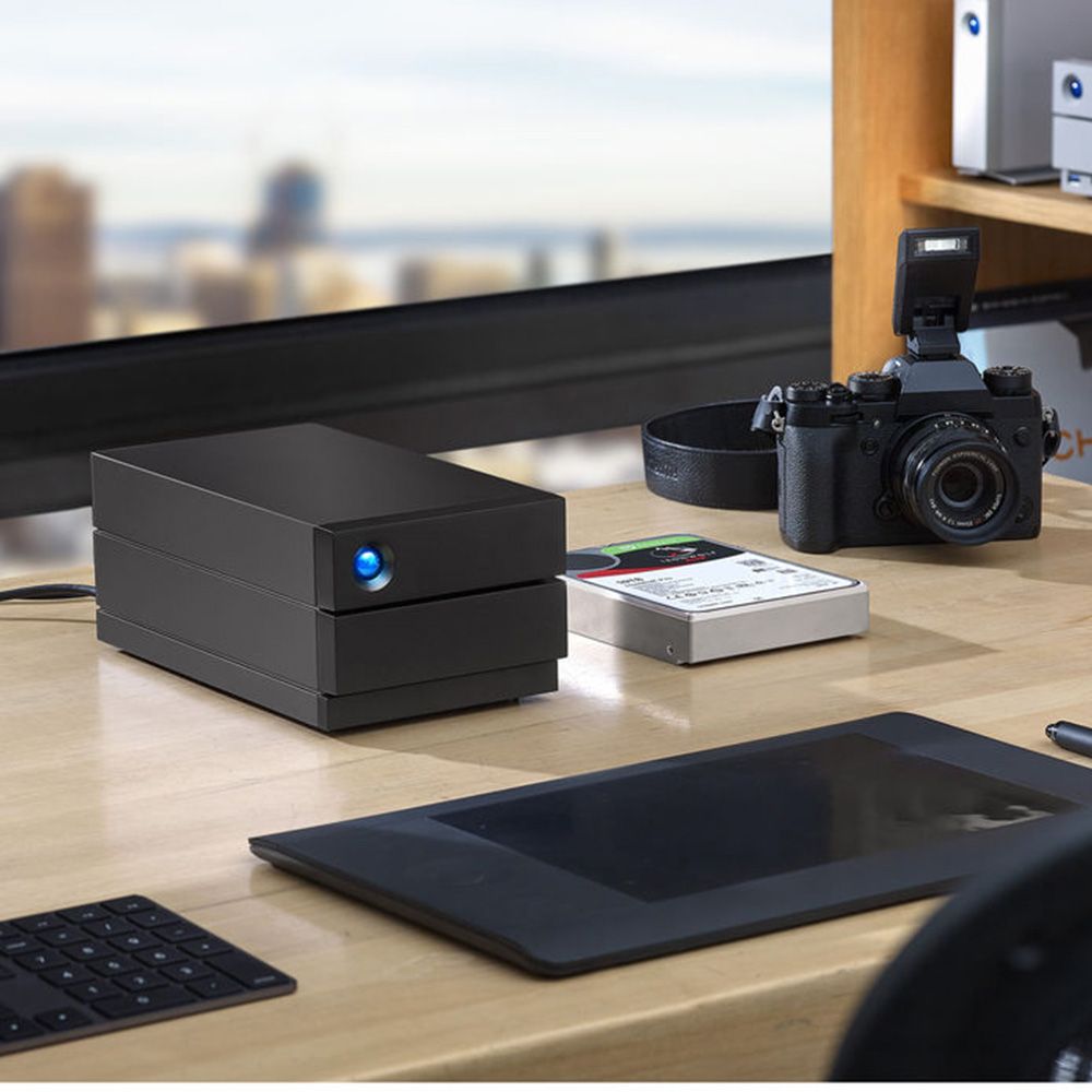 Designed for photo, video, and audio production, graphic design, backup, and archiving, the 8TB 2big 2-Bay USB 3.1 Type-C RAID Array from LaCie has dual 3.5" SATA drive bays, each of which is equipped with a 4TB IronWolf Pro 7200 rpm SATA III 3.5" Enterprise-class hard drives, for a total storage capacity of 4TB. It connects to your host system using its 10 Gb/s USB 3.1 Type-C interface, which is also known as USB 3.1 Gen 2, to provide data transfer speeds of up to 440 MB/s. This RAID may also be used with Thunderbolt 3 hosts and includes a USB cable, an external power supply, and a limited 5-year warranty with data recovery services.