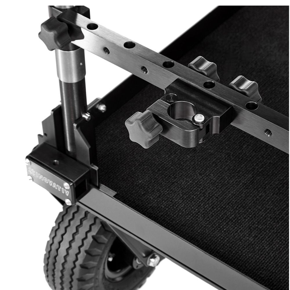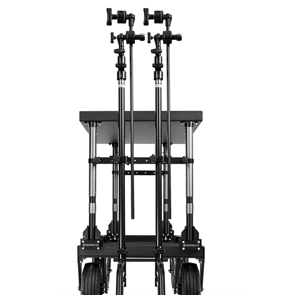 Connect two C-Stands to your cart via the C-stand storage clamps. Simple easy off clasping clamp that connects to the INOVATIV Accessory Cross Bars. Only compatible with 1.25″ diameter c-stands (Matthews work great), please check before purchasing.