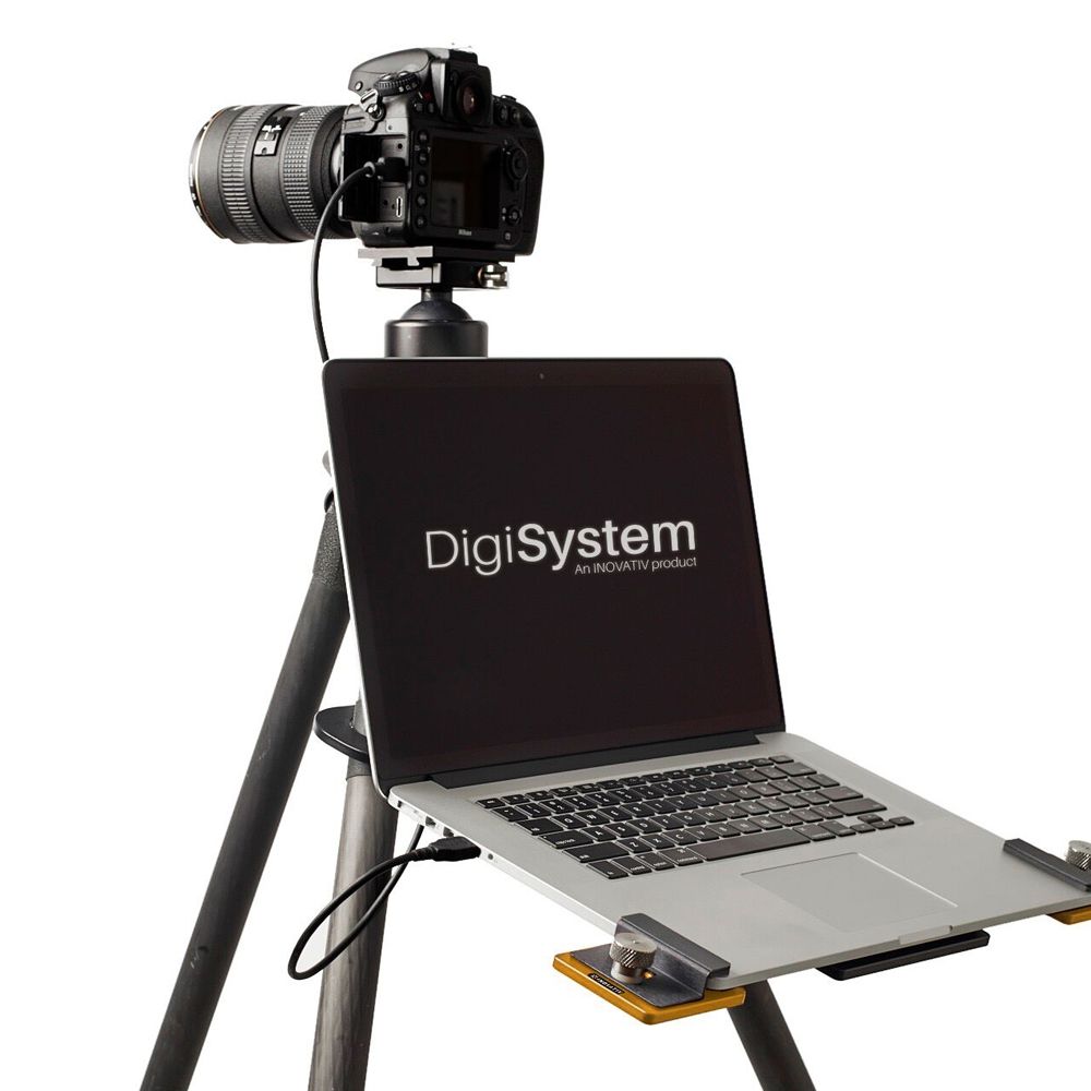 The DigiBracket is a bracket lets you attach the DigiPlate Pro and DigiPlate Lite directly to the legs of your tripod. Machined from strong and lightweight 6061 aluminium, the bracket keeps your laptop secured and off the ground when you are out shooting solo.