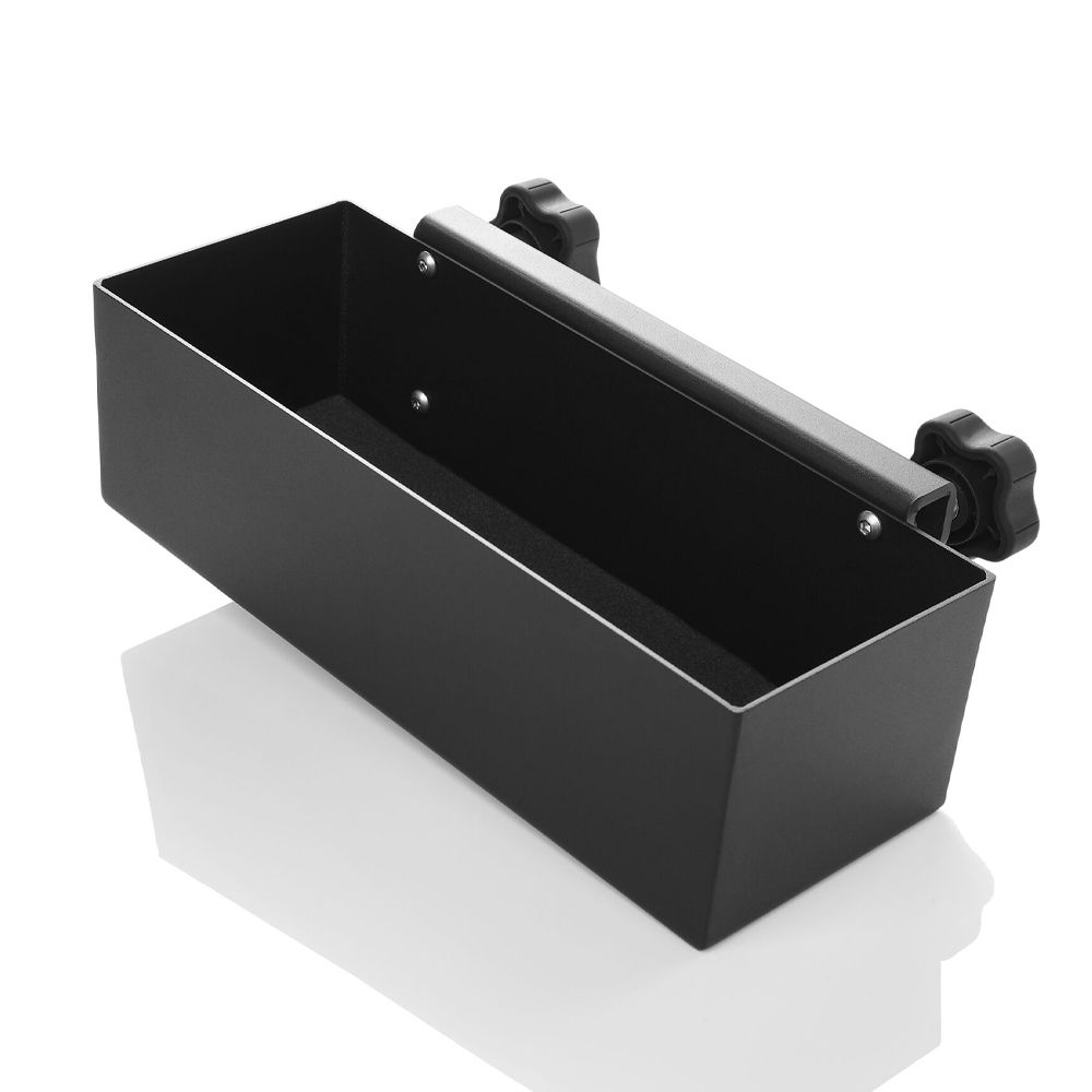 Mounts simply to the edge of the top shelf. Perfect for tools, snacks or anything that you want to keep off your working space. Available in small, medium, and large sizes.