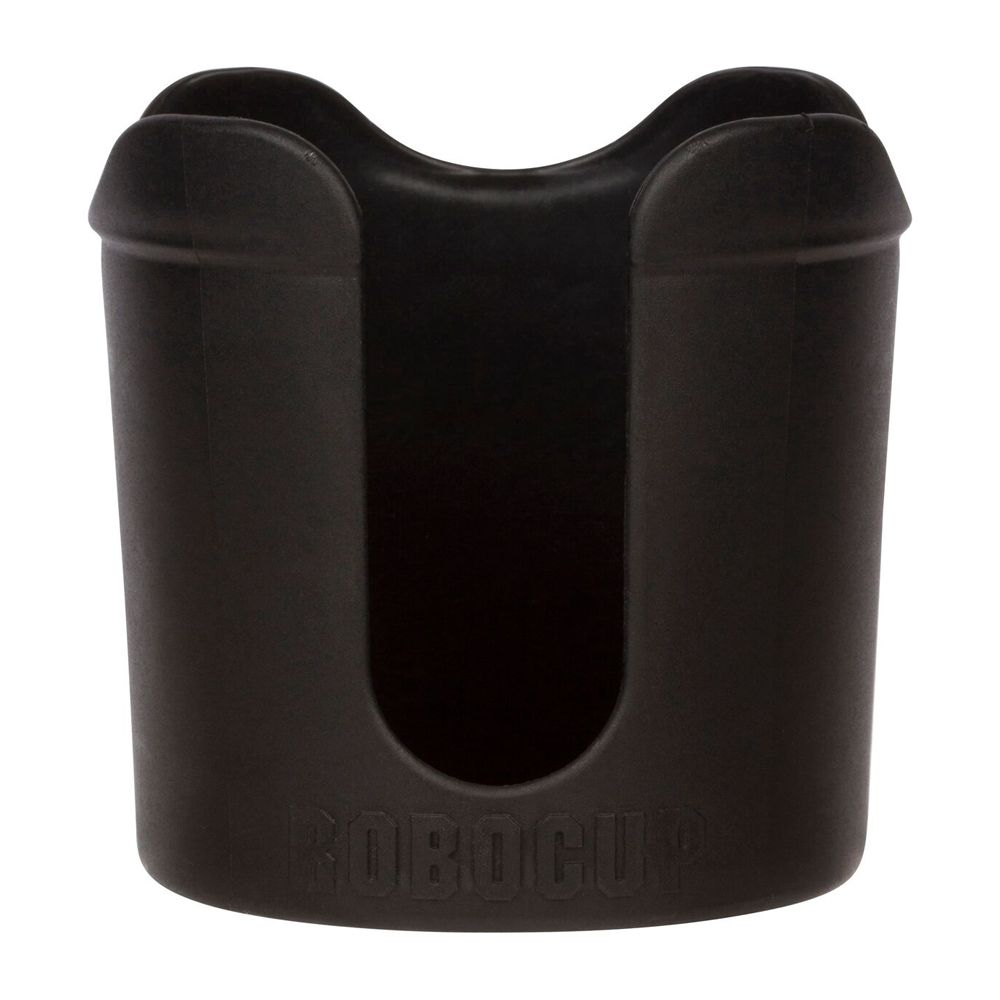 The Inovativ RoboCup Plus attaches to the standard RoboCup using included hook-and-loop straps and fits large cups, mugs, glasses, koozies, tumblers, and other drink containers up to 3.75" in diameter. It's 4" in height and features a wavy top rim that makes it easy to insert and remove shorter drinks.