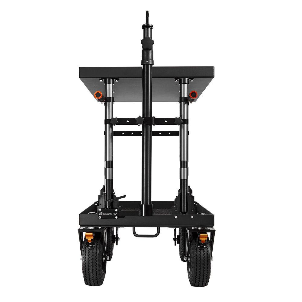 This system allows for users to install a mast with a 2-stage baby pin riser attachment to any INOVATIV equipment cart. This accessory can be used to mount third party gimbal docks that use a 5/8 baby pin. Default system for Echo, Ranger, and Scout carts is configured to be mounted on the swivel wheel / narrow side of the cart.