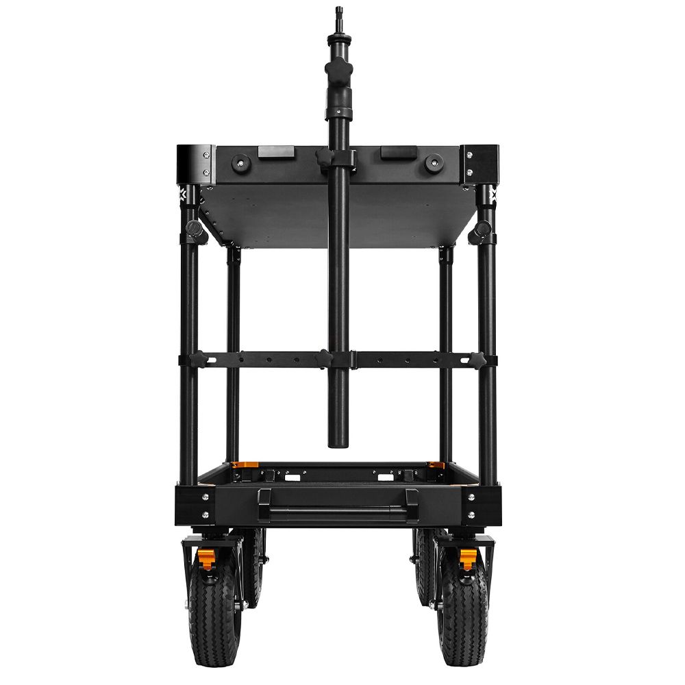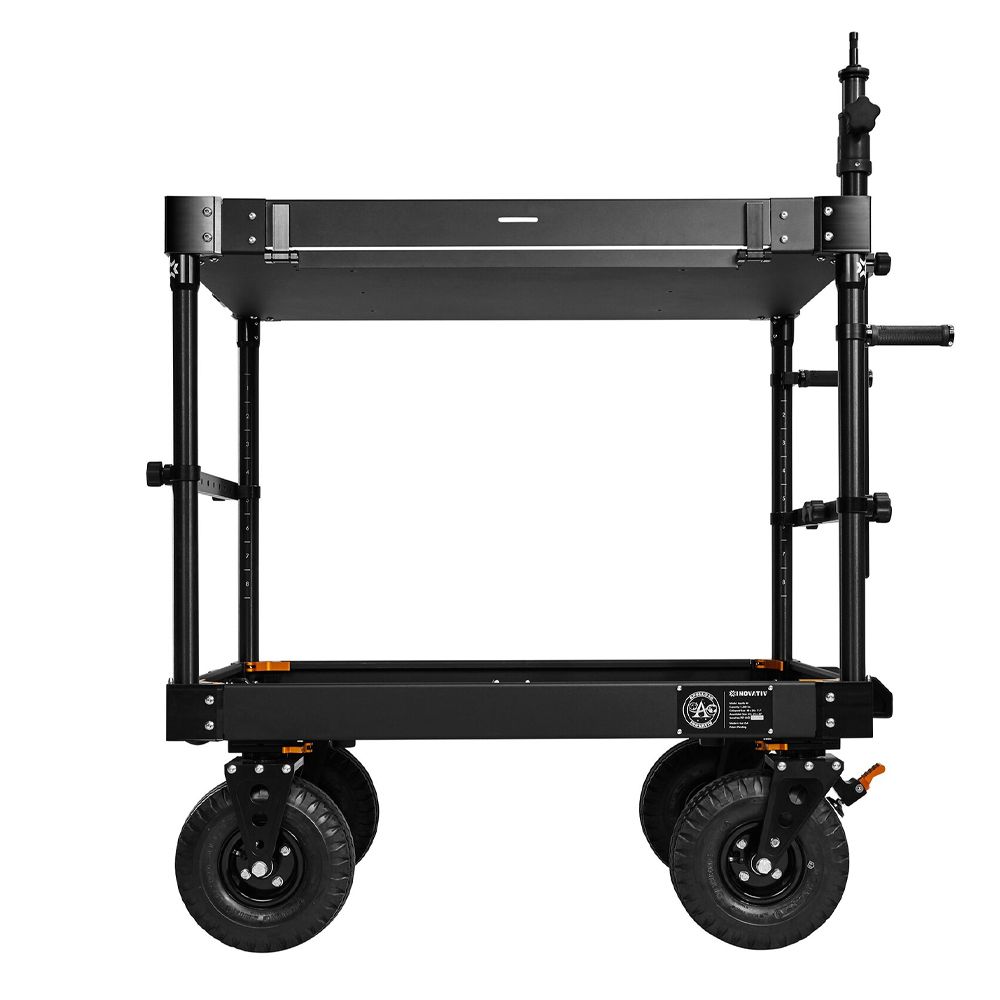 This system allows for users to install a mast with a 2-stage baby pin riser attachment to any INOVATIV equipment cart. This accessory can be used to mount third party gimbal docks that use a 5/8 baby pin. Default system for Echo, Ranger, and Scout carts is configured to be mounted on the swivel wheel / narrow side of the cart.