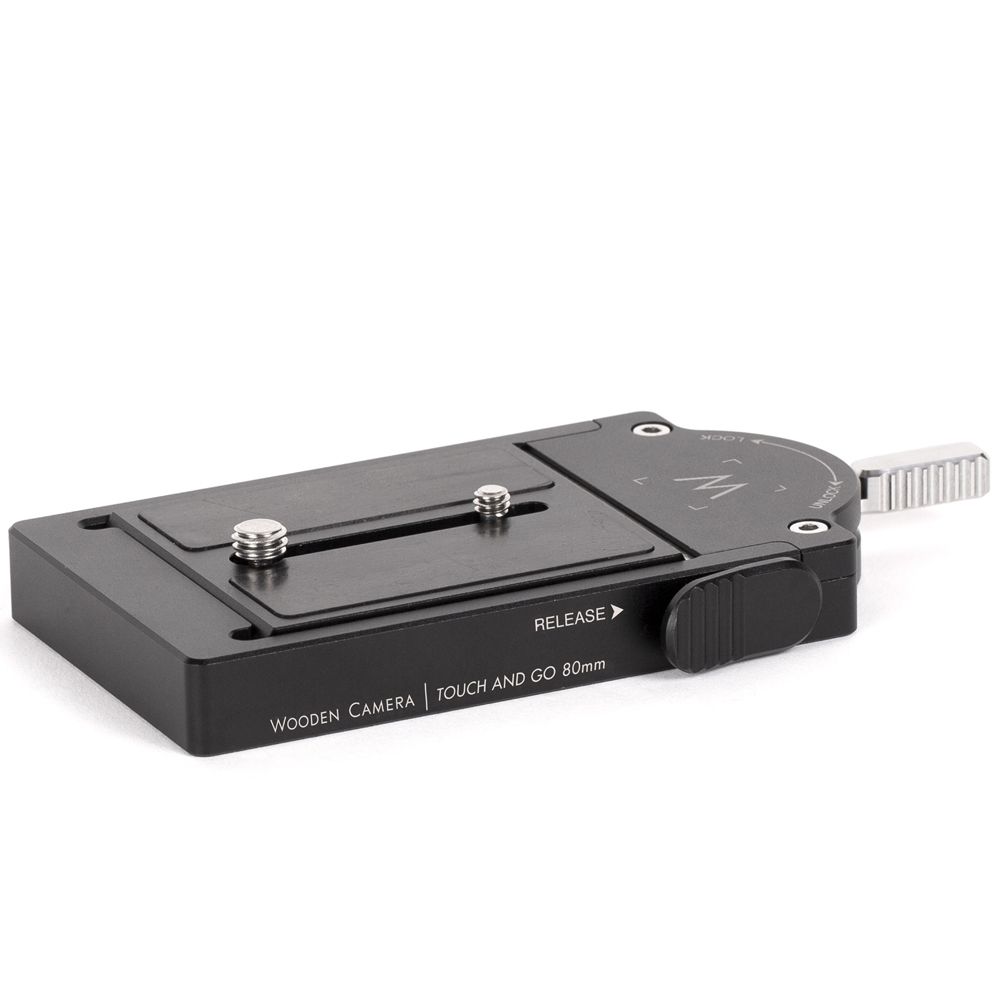 Mini Touch and Go System is an industry standard, quick release system compatible with OConnor 80mm, Sachtler, and Ronford Baker. Our version is lighter than other systems due to the recess designs on the receiver and plate. Once the plate is attached to the camera by included 1/4-20 and 3/8-16 screws, simply drop it into the base and the plate will snap into locked mode. Push the lever further to clamp the Quick Release Plate in place. To remove, pull the lever and push down on side release button at the same time.