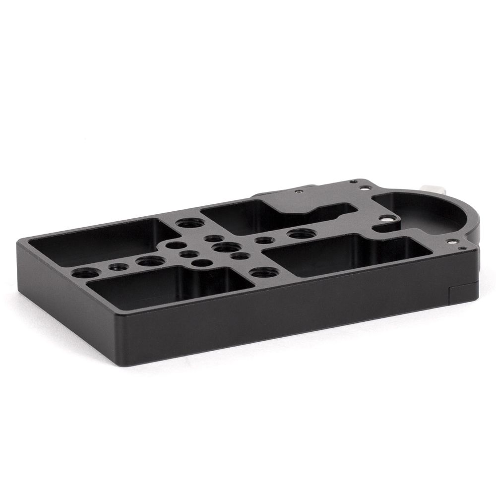 Mini Touch and Go System is an industry standard, quick release system compatible with OConnor 80mm, Sachtler 16, and Ronford Baker Mini RBQ. Our version is lighter than other systems due to the recess designs on the receiver and plate. Once the plate is attached to the camera by included 1/4-20 and 3/8-16 screws, simply drop it into the base and the plate will snap into locked mode. Push the lever further to clamp the Quick Release Plate in place. To remove, pull the lever and push down on side release button at the same time.