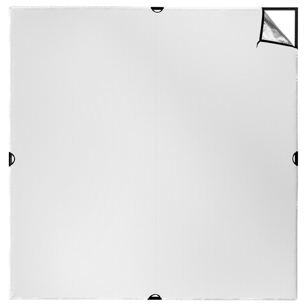 A versatile two-sided reflective fabric, the Scrim Jim Cine Silver/White Bounce Fabric from Westcott is compatible with 1.2 x 1.2m Scrim Jim Cine frames and features a heavy-duty touch fastener lining for quick setup and convenient portability. This reversible fabric has both bright, cool silver and neutral white reflective sides, allowing you to quickly switch between applications. The silver bounce side adds bright, specular highlights and an overall cooling quality while the white side produces soft, natural looking highlights.