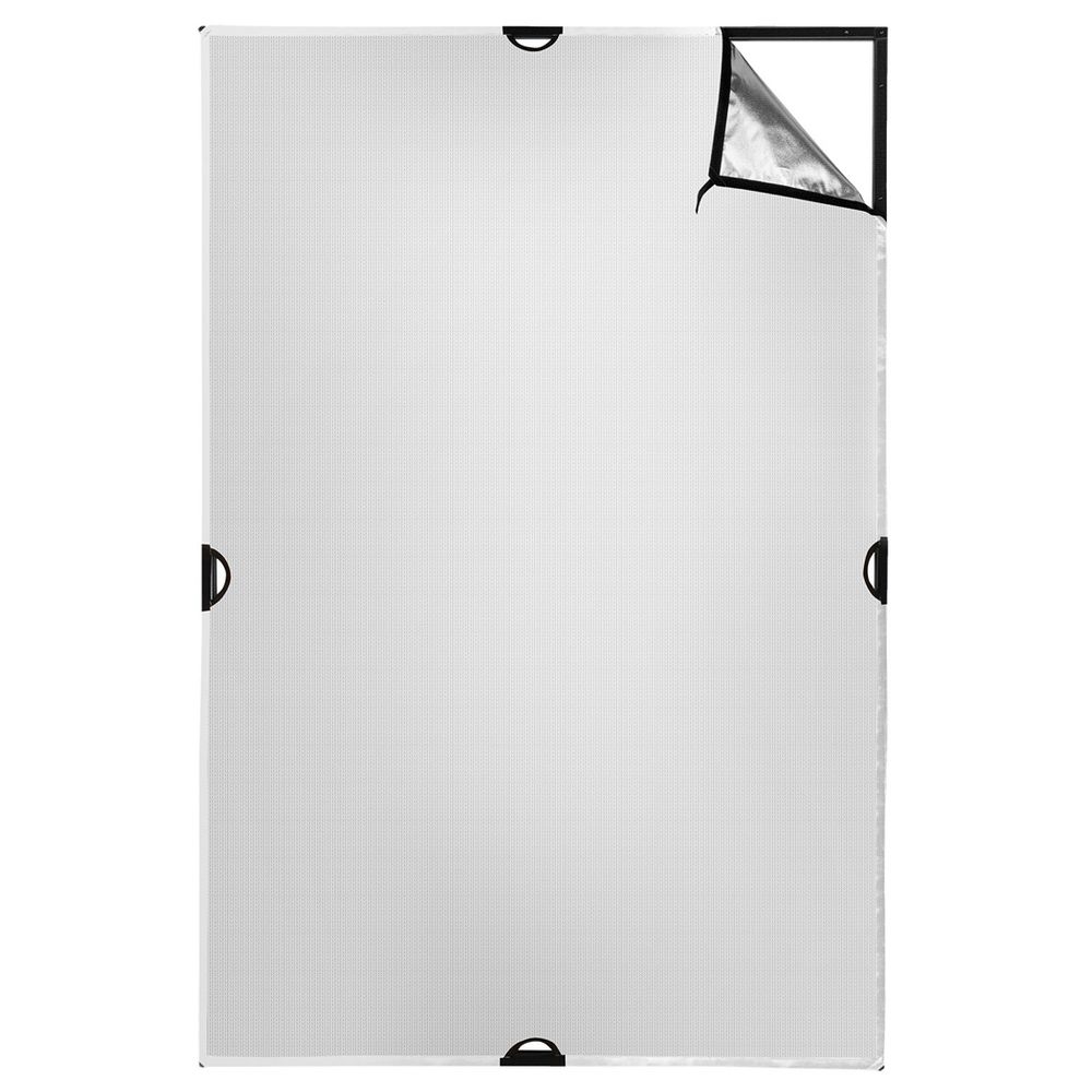 A versatile two-sided reflective fabric, the Scrim Jim Cine Silver/White Bounce Fabric from Westcottis compatible with 1.2 x 1.8m Scrim Jim Cine frames and features a heavy-duty touch fastener lining for quick setup and convenient portability. This reversible fabric has both bright, cool silver and neutral white reflective sides, allowing you to quickly switch between applications. The silver bounce side adds bright, specular highlights and an overall cooling quality while the white side produces soft, natural looking highlights.